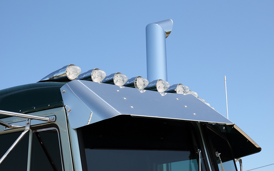After the hood was sprayed, Bill noticed that it wasn’t right, so Neil had Bill rebuild the hood again. Bill also did extensive repairs on the cab, painted it, and then added 11 cab lights. Taking them back to his shop, Neil was excited to start seeing everything come together. A few days later, Neil’s mechanic and friend, Danny Norwood, came over to help. After getting the cab set with no problems, they put the hood on, but it didn’t close properly. As hard as they tried to make it work, it just wouldn’t. They headed back to Bill’s place only to find out that he had retired and sold his business! Thankfully, the new guy, John Chamorro of Colorworx Paint & Fab, was able to fix the hood and get it right – the third time is always a charm!