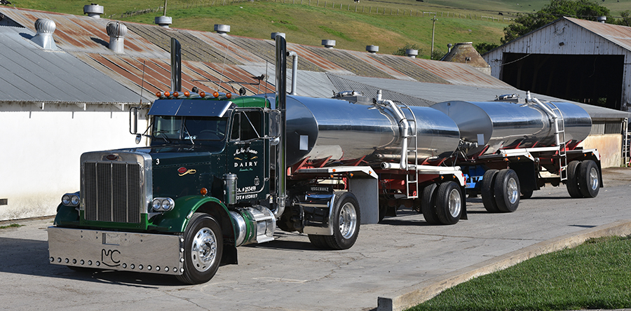 By this time (around 2000), the dairy was dialed-in and running well, so Neil’s dad said that if he wanted to go back to hauling hay, he could use the ’77 Pete. Jumping at the chance, Neil bought a set of used Tuff Boy hay trailers and went back to hay trucking. But, not long after that, someone quit at the dairy and Neil had to go back to run it. That was also a very dry year, so Neil had to start hauling water, which they bought from the City of Petaluma, into the dairy – at the rate of three double tanker loads a day! Needless to say, the hay-hauling trips came to an end – again. A few years later, unfortunately, Neil’s marriage came to an end, as well.