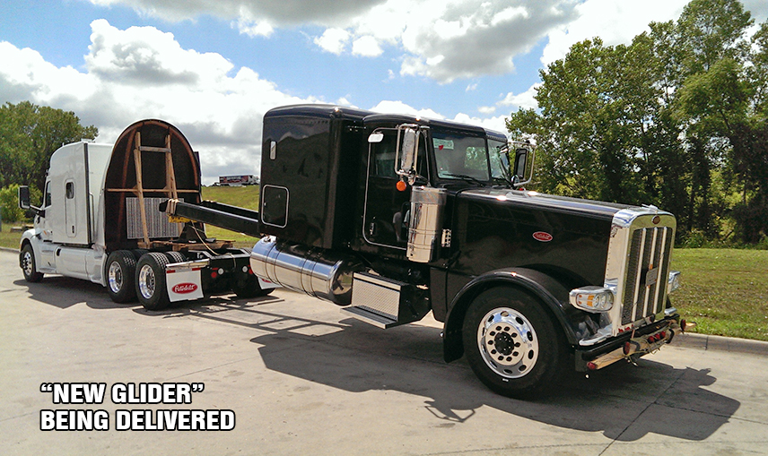 After the insurance company settled, Kevin called Clint and asked him about ordering a glider kit 389. Wanting to use everything that he could from the original truck, he started the process of rebuilding and recreating his favorite old truck with a new one. Wanting to put it all together himself, at his own pace, Kevin just had Clint order the non-rolling glider in Sable Black.