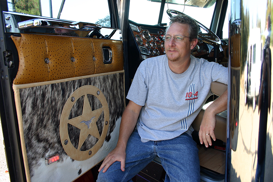 If you’ve been reading this magazine for a while, you are probably familiar with many of the featured columns, the regular advertisers, and the great photos of trucks that we all admire. The show coverage and the stories about drivers and their rigs are, in my opinion, second to none. Its one thing to be given the details on a sweet ride, but it’s even more intriguing to hear the background stories of the folks behind the machine. Speaking of the people behind the scenes, I was recently talking to the “head honcho” of 10-4 Magazine (“Big E”) over the phone, and we were discussing the various contributors who help to get this magazine together and into the racks for all to see. It takes a myriad of cooperative people to get it done every month. What may get overlooked or taken for granted is the overall design and layout of each page in each issue. Each story is carefully edited and arranged to make the magazine as entertaining, informative and attractive as possible. The man responsible for such a task is Dan “The Man” Linss – a subtly written name on page 8 – that deserves so much thanks for the selfless use of his God-given skills and talents, to bless and expose the real true spirit of honest-to-goodness American truck drivers. Recently, Dan revealed the latest design for the 10-4 t-shirt which features my ‘81 Freightliner that I built as a tribute to my dad. I was absolutely floored at the sight of this incredible honor. Dan, I thank you sincerely for the opportunities you’ve given me and for the unparalleled professionalism you put into your work, simply to shine the light, and the camera, on others. God bless you, and good luck editing this one! Enjoy some humble pie.