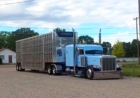 Once he turned 18, Clinton began hauling coal with his dad, who taught him the ropes. When he was 21 he started pulling a walking floor trailer. A couple years later, he got the opportunity to buy his own 2007 extended-hood flattop Peterbilt from a guy named Jared Caruso. Although Jared did not know Clinton at all, he went out on a limb for him and financed the truck. I guess it worked out, because the two still work together today! Clinton ran that truck for only about one year, and then he decided to buy a new (compliant) truck. So, after a recommendation from Jared, Clinton called Clint.
