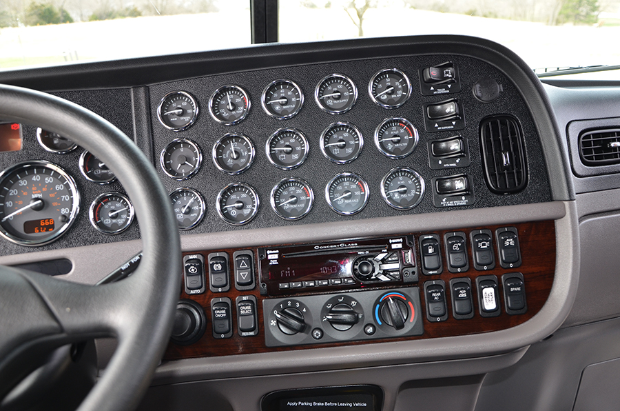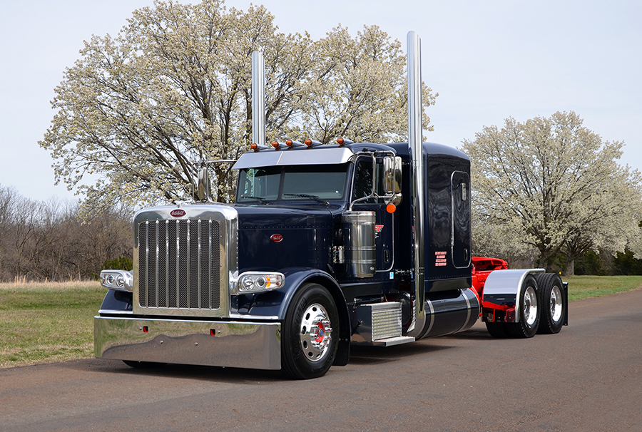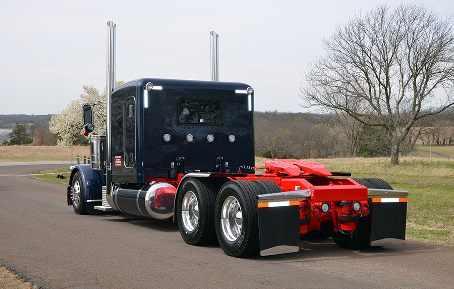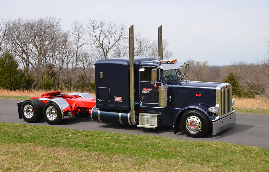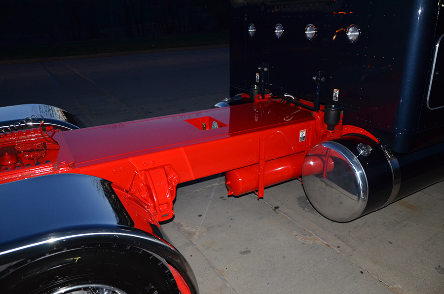 Over the years, the company colors had evolved to red trucks with dark blue frames, so on this one, to be different, they decided to reverse the scheme and get a dark blue truck with a red frame. The truck is a 2016 Peterbilt 389 with a 72” flattop that sits on a 280” wheelbase and has a 500-hp PACCAR MX engine, an 18-speed, Low-Air suspension, and a Platinum interior package with all of the extra bells and whistles. The goal on this build was to add just enough stuff to make it cool, but not too much.