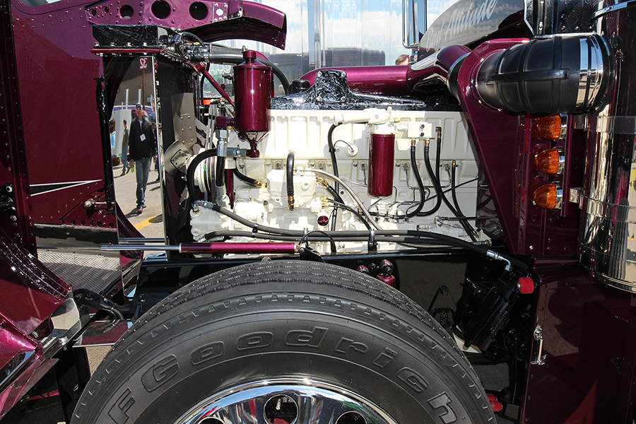 In the Working Truck classes, the biggest winners were Jon Donadio, whose bright green 2003 Kenworth W900 and polished East end dump earned the Best of Show trophy in the Dump Combo class, David Foster, whose maroon and white 2005 Kenworth W900 took the Best of Show Bobtail award, and Chad Berry, whose super-clean black and purple 2012 Peterbilt 386 (yes, another aero truck) took home the big iron in the Working Combo class.