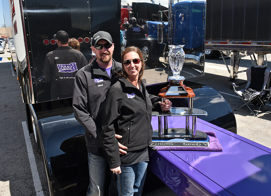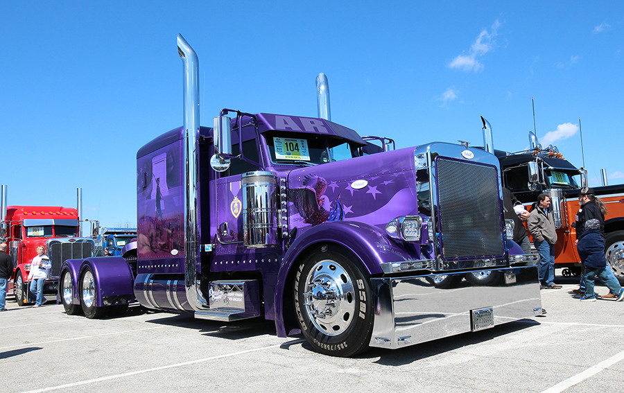 Other popular trucks that took home a lot of accolades included Cliff King’s gold 2014 Pete 386 and matching 2006 Wabash dry van, Keith Smart’s white and orange 2015 Peterbilt 389, Eric Holthaus’ classic black and white 1985 Peterbilt 359, and John Jaike’s decked-out purple 1999 Kenworth W900 and matching 2005 Utility trailer.  But, the most impressive win went to Sean McEndree Sr. and his “Purple Heart Tribute Truck” – a purple 2006 Peterbilt 379 – that took home the coveted People’s Choice award.