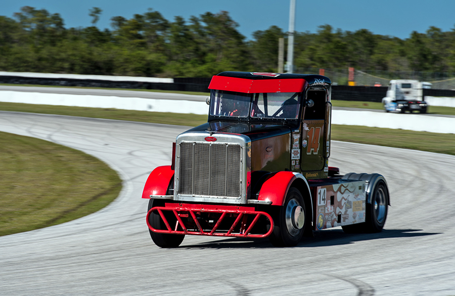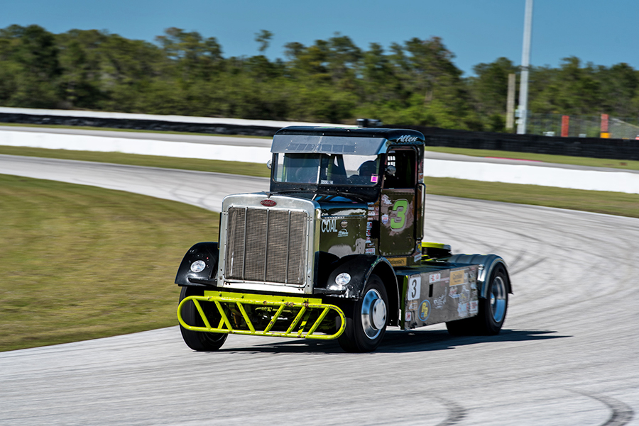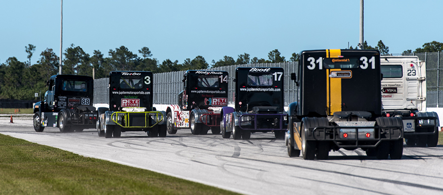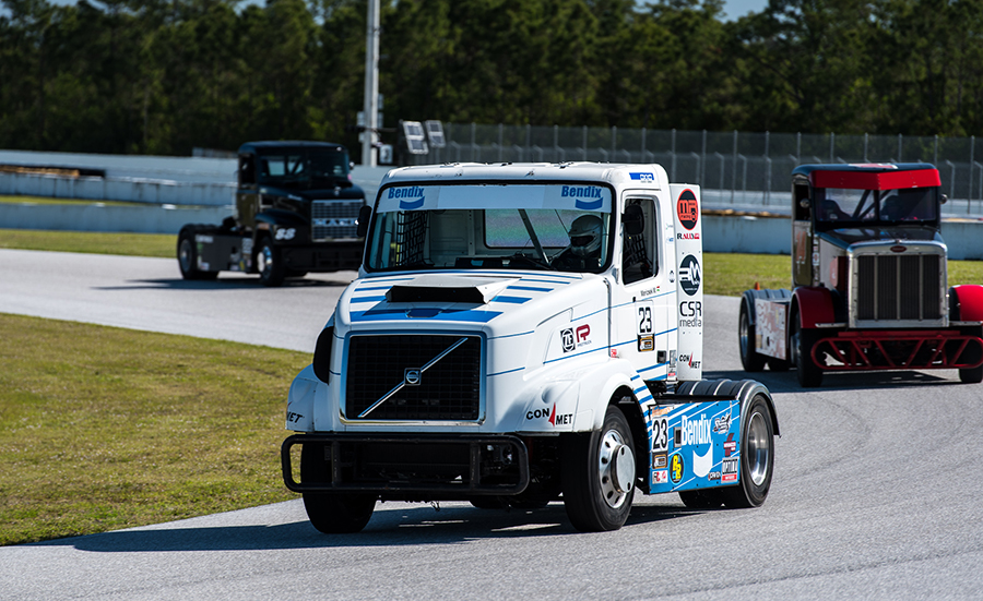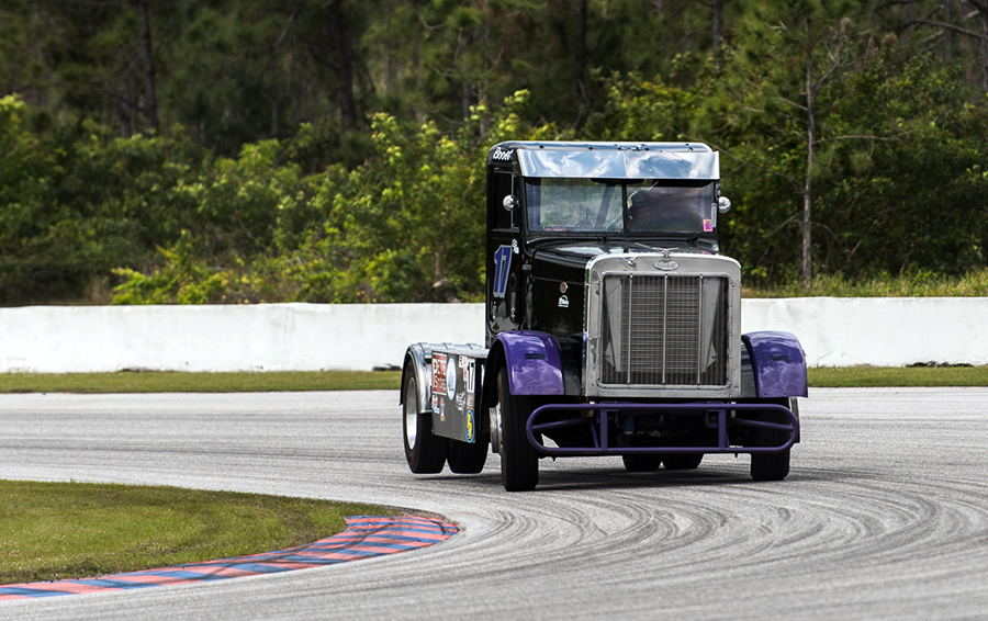 As the ChampTruck staff and teams rolled into the raceway for tech and safety, it was like a family reunion, with the return of many teams from last year, along with a few new faces, as well, which were welcomed quickly into the fold. Jupiter Motorsports, compiled of Ricky Rude in his #14 Peterbilt 378 and Allen “Turbo” Boles in the #3 black and lime green 359 Peterbilt, were joined by newcomer Justin “Boost” Ball in his #17 black and purple Peterbilt. Justin is new to the Jupiter team, but not new to ChampTruck. Also returning was #23 Truck Race Team USA out of Hungary, in their Bendix-sponsored Volvo, driven by their newest team member, Miklos Maricsek (Miki). Not to be forgotten is the 2015 ChampTruck Champion, the formidable #88 Mike Morgan and his Powershift Performance Race Team’s big black “Mackvader” Mack.