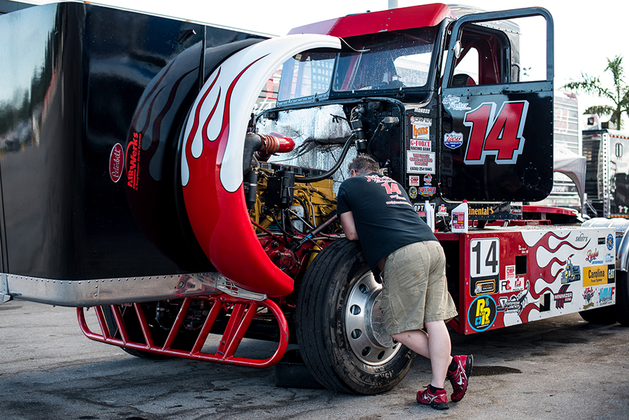 New to the series and brand new to racing is Chris Kikelhan, driving the #31 Freightliner Colombia sponsored by Optima Batteries and Continental Tires. Chris is no stranger to diesel rigs (his 1956 Kenworth is the cover feature of this month’s magazine) – his passion for trucks started when he was just a little boy, when he could be found either in the truck with his dad or working on them in the garage. He has fond memories of watching truck racing at Flemington Speedway, watching the bobtails run on dirt. The sound of 2-stroke Detroits and black smoke filled the air and made for some awesome racing memories.