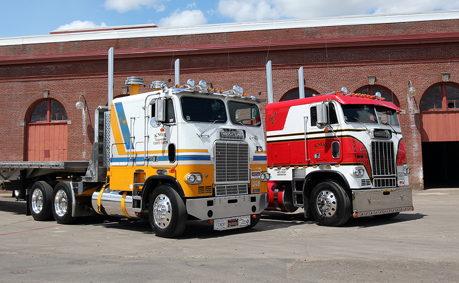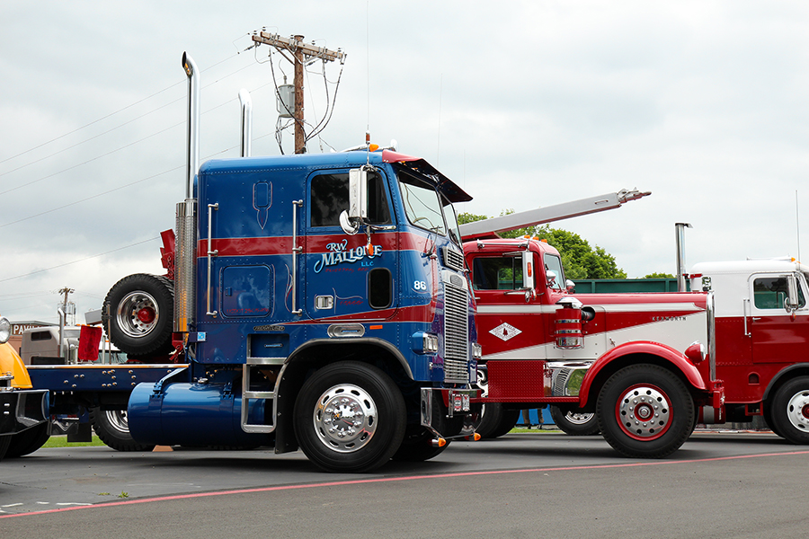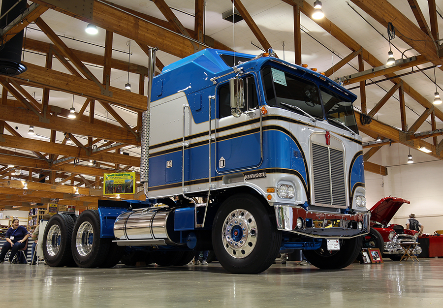 Mixed in with the old trucks, there were a lot of newer trucks on display, too, including many of our past cover trucks – one dating all the way back to our June 1995 cover (Dale Callen’s yellow 359 Peterbilt RV). Another truck that was getting a lot of attention was parked inside one of the buildings with the other vendors – a 1979 Kenworth K-100C Aerodyne owned by Paul Cox. Painted blue, silver and black, this super-clean cabover just underwent a complete restoration, and it was absolutely perfect.