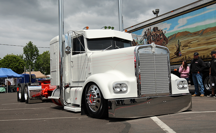 Teaming up with the ATHS, Chrome and Elegance promoted a Peoples’ Choice award at the show. Not only did the winner get a trophy, but he also got the unique opportunity of being featured in the 2017 Chrome and Elegance wall calendar. The idea of organizing a Peoples’ Choice was developed months in advance of the show, but rather than a conventional ballot box, Alex Mielczarek of Rockwood Products created a computer-driven system. Starting from scratch, the goal was to code a platform that would include everyone, so that both attendees of the show and those at home, around the world, could cast their votes on a selection of pics uploaded to the Chrome and Elegance website. The winner, Rusty Bradeen and his white and black Peterbilt, was photographed in front of the State Capitol in Salem after the show. Look for the new 2017 calendar at a chrome shop near you soon.