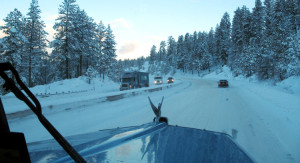Happy new year, everyone! 2017 sounds like one of those years we used to imagine in some futuristic sci-fi movie. I don’t know about you, but so far, none of my cars or trucks are flying through the air yet. I still manually drive an 18-wheeler – not a 40-ton hover-ship – and I prefer it this way. I want my rig to be rolling in perfect harmony with that ribbon of asphalt that we all know and love. However, that also means that we must roll on a variety of road conditions, and although ice and snow is something I get plenty of time with, I still cannot develop a pleasant relationship with it. I sometimes joke that the freezing weather makes my tire-shine more difficult to spray. But, more frustrating than that, is the time delays caused by icy roads. And who really enjoys hanging iron and clanking down the road at a snail’s pace? This month, I wrote another parody. Johnny Cash had a hit song called “I Got Stripes” that refers to the stripes printed on a prison uniform. But, I rewrote the words to reflect the frustrations of dealing with icy roads. I hope you enjoy my version called “I’ve Got Ice…” this month. Be safe out there. Thanks to Shannon Royce for the great “snowy” picture!