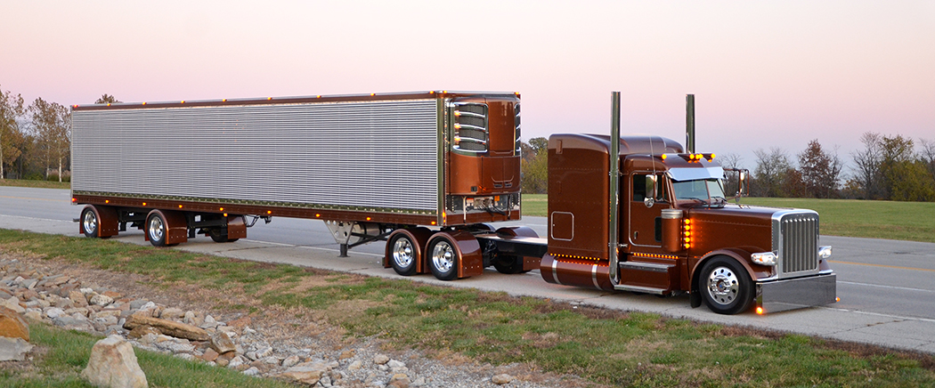 Originally, they were thinking about going with Legendary Brown for the color, but while looking through some paint chips, we ran across an unpublished formulated yellow color that looks brown. We all agreed this color would be different – and look sweet. Johnny decided he needed a nice trailer to go behind this new big ride, so he also ordered a new stainless Utility reefer from Jeff Meehan, next door at our sister company, Utility Trailer Sales of KC.