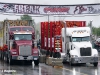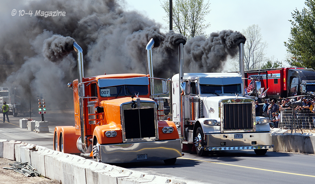 By far, the coolest thing driving into the grounds was seeing the huge American and Canadian flags flying proudly over the track.  Racers from many places in Canada came down to race, including Jean Guy Boulanger with his Orange Kenworth W900L, Jean’s brother Daniel Boulanger with his black “Le Quack” Peterbilt 379, Ray Murphy with his blue Kenworth W900, Martin Couture with his green 2001 Freightliner Classic and Mathiew Dinnigan with his white Peterbilt 386, just to name a few.  This was definitely an event supported by both countries, with plenty of mutual respect and support.