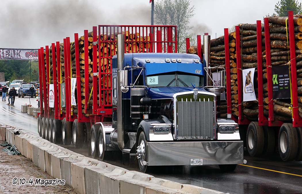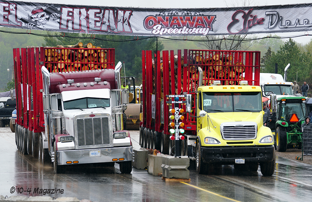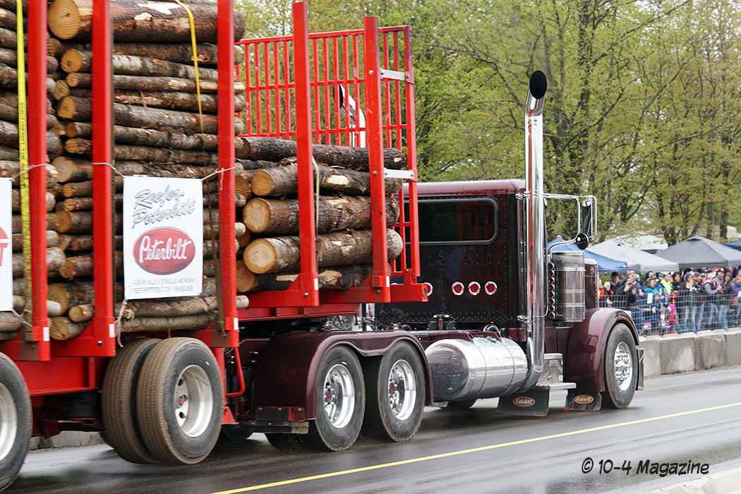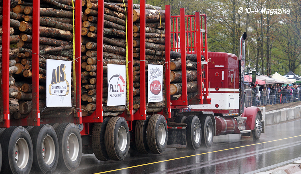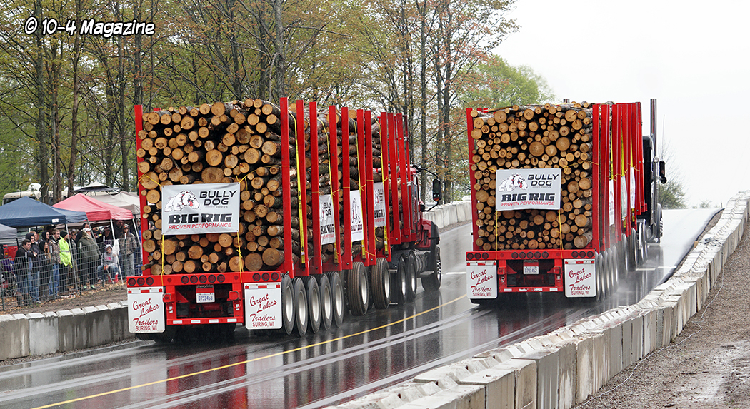 Why loaded log trailers?  Northern Michigan is known for its logging industry, so it only seemed fitting to have the trailers loaded with a product providing economic activity in that region.  Not only a necessary industry, but Mike Sturgill also owns a logging company.  With that, he has at his disposal a truck scale, so the logs could be loaded and weighed, making sure each trailer was within 10 pounds of the 125,000-pound mark.  Usually, for uphill drags, they pull loaded box vans, lumber or concrete barriers, but the logs just seemed appropriate and fitting for this event in Michigan.