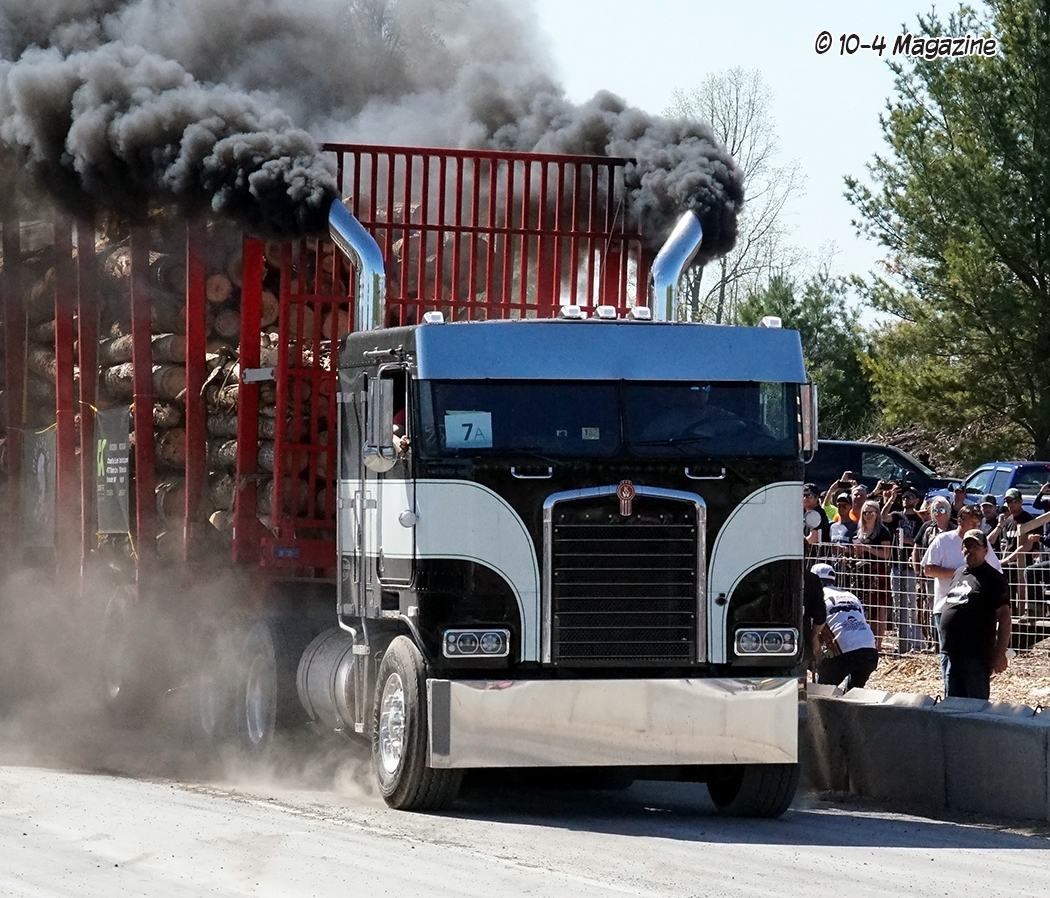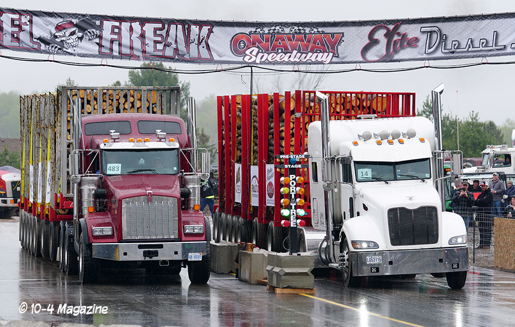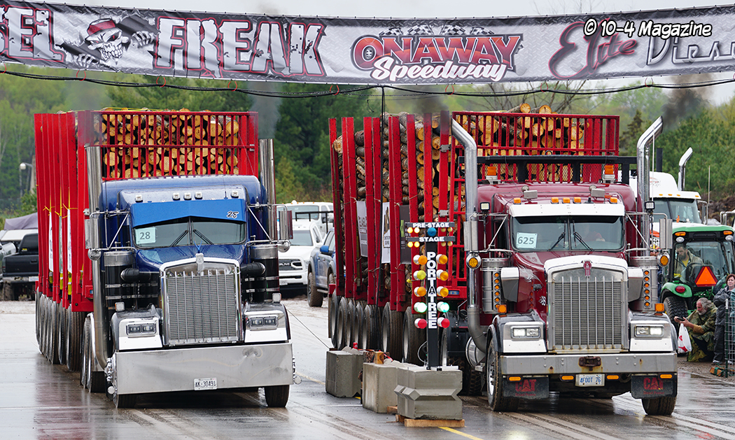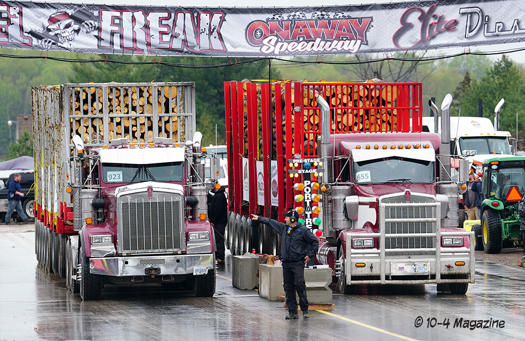 Why loaded log trailers?  Northern Michigan is known for its logging industry, so it only seemed fitting to have the trailers loaded with a product providing economic activity in that region.  Not only a necessary industry, but Mike Sturgill also owns a logging company.  With that, he has at his disposal a truck scale, so the logs could be loaded and weighed, making sure each trailer was within 10 pounds of the 125,000-pound mark.  Usually, for uphill drags, they pull loaded box vans, lumber or concrete barriers, but the logs just seemed appropriate and fitting for this event in Michigan.