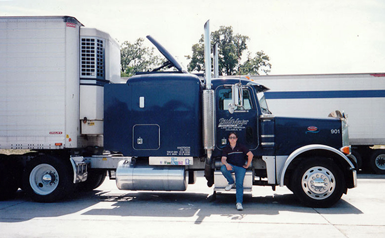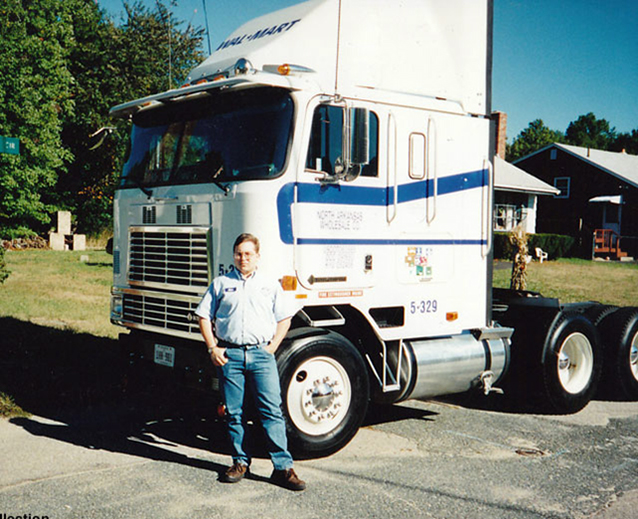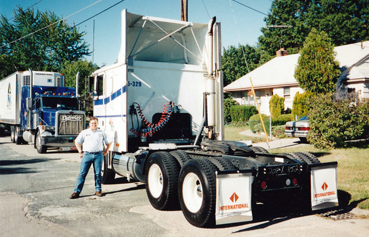 In 1989, Mike got his license and was “legal” to drive intrastate. His first job was local, working for East Coast Truck & Trailer in Waleole, MA, picking up damaged trucks and trailers and bringing them back to the shop. His next job was with Land Transport out of Framingham, MA. He signed-on to run local, but one night a driver called in sick and there was a hot load going to Indiana. The boss asked Mike, “Can you do it?” Needless to say, he took off for Indiana and never looked back. At 18 he started running Boston to LA, and only got caught once. Lucky for Mike, the officer was ready to go home, so he just told him to get out of his state!