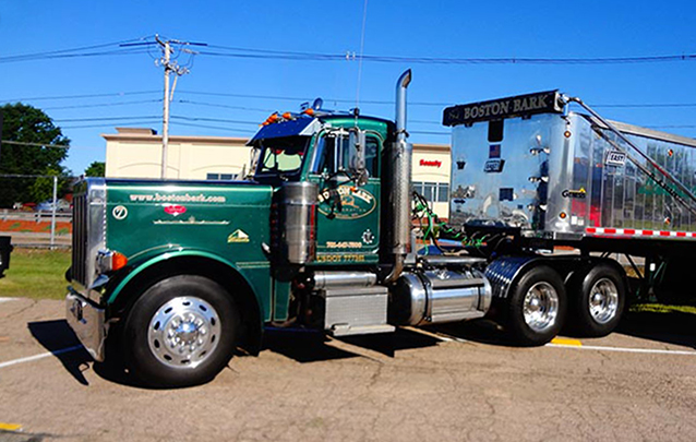 Around 2009, Mike started his dump truck career, running for Sam’s Transportation in Georgetown, MA. This job only lasted one year before he got laid off because of the bad economy, but while there, he got to drive some large W900s and 379s hauling dirty dirt. From 2010 to 2014 he drove for Boston Bark in a green 379 Pete that he turned into a show truck. When the owner sold the property, Mike decided it was time to get out, which led him to his current job, which he loves.