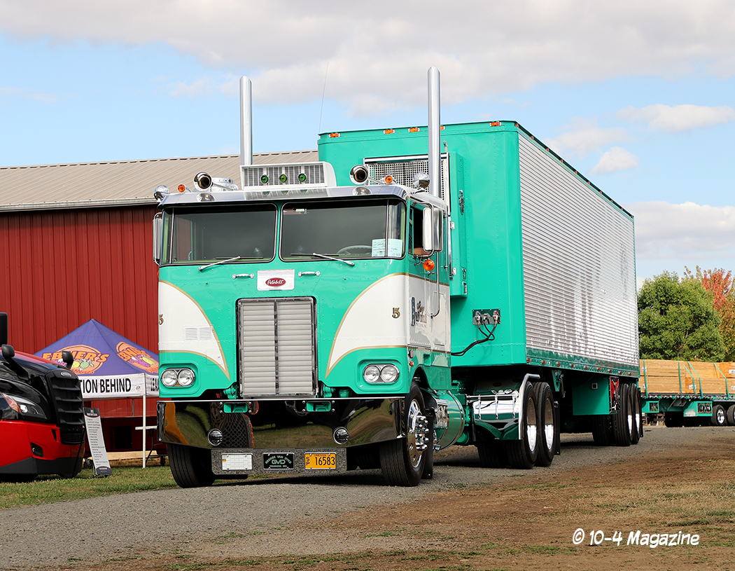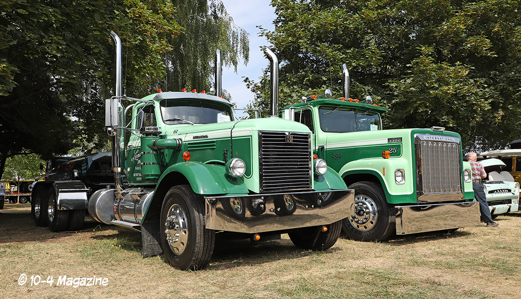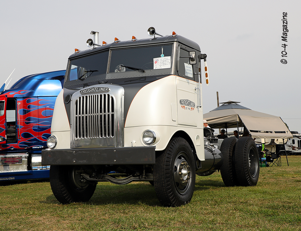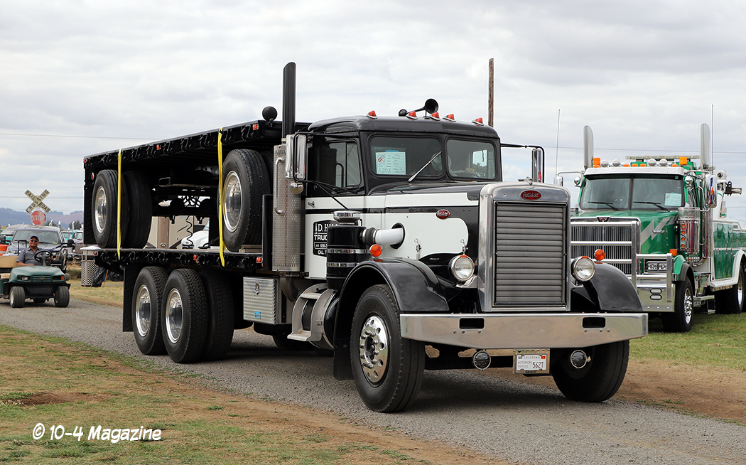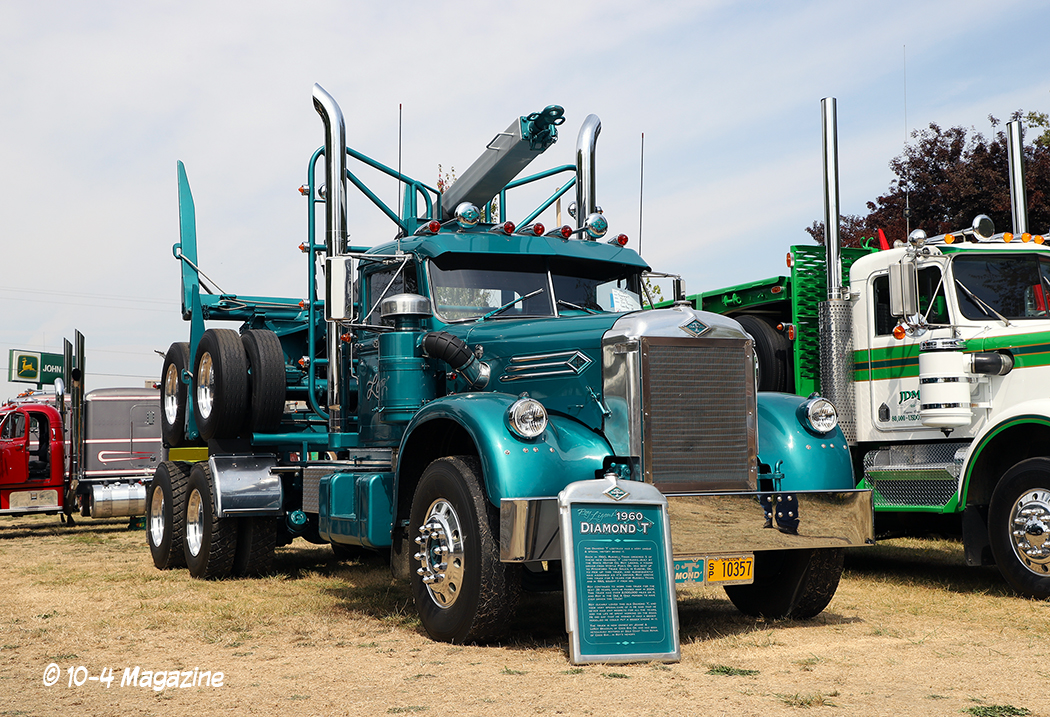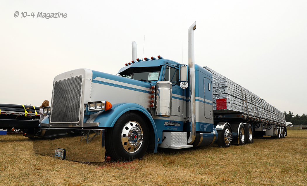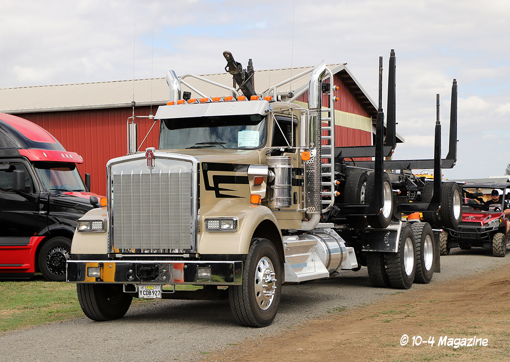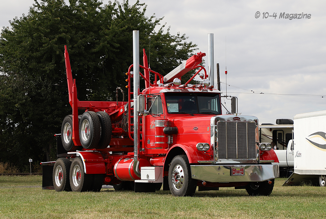 Arriving in Oregon on Thursday night after a long 12-hour drive from Central California, we hit the grounds early on Friday morning to begin setting up our booth. Sitting on the main road that went right through the middle of the show, our booth was a great place to just sit and watch the trucks roll by, as they headed to their designated parking areas (the antiques park in one area and the working trucks park in another). We were fortunate to have our bright red party tent (booth) flanked by two of the finest rigs – Trevor Hardwick’s cool brown Freightliner cabover and Steve Chandler’s blue and gold W900L (our August 2018 cover truck).