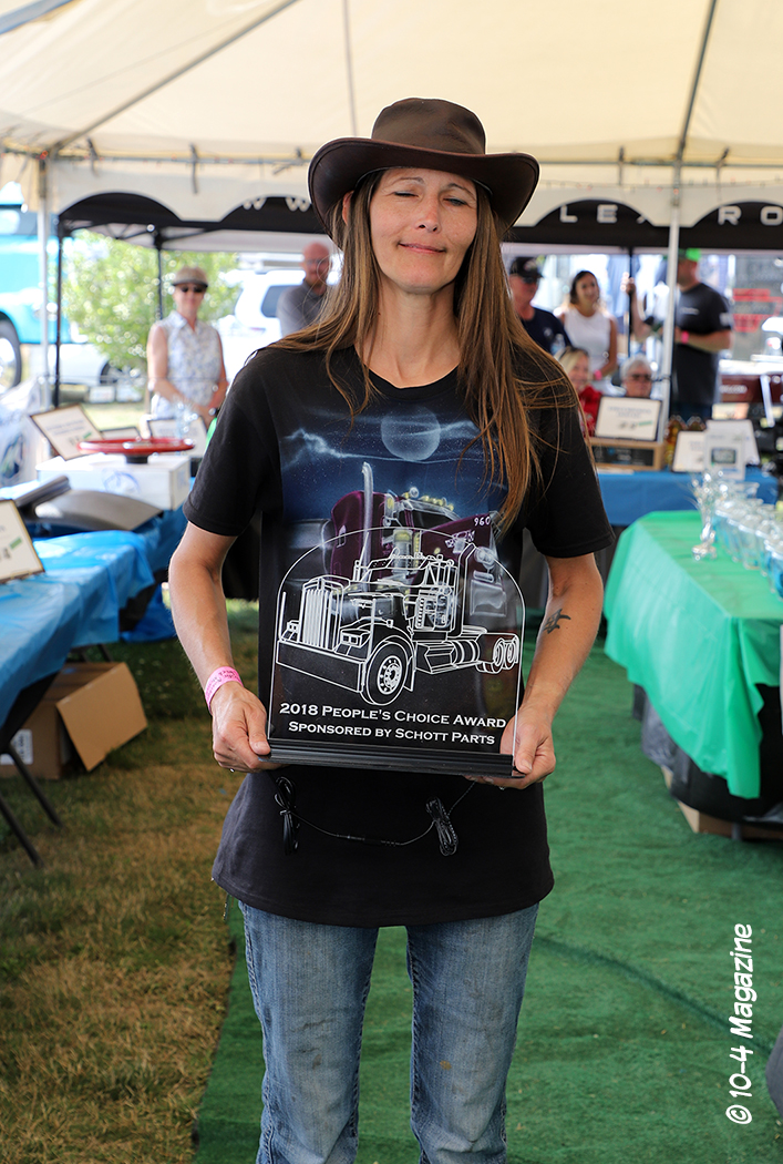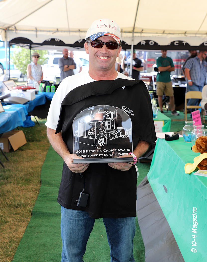 The winner of the People’s Choice Best Antique went to Gary Bean. Many of you have seen Mike Stoneman’s brown “Let’s Roll” 1951 GMC, with a patriotic theme, at the antique truck shows for years. Unfortunately, Mike passed away this year, so Gary brought his rig out to the show in his honor – and ended-up taking home the trophy in the antique class! No doubt, many of those people’s choice votes came from folks who wanted to further honor Mike and his stellar old patriotic truck.