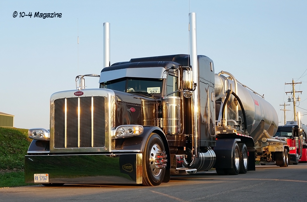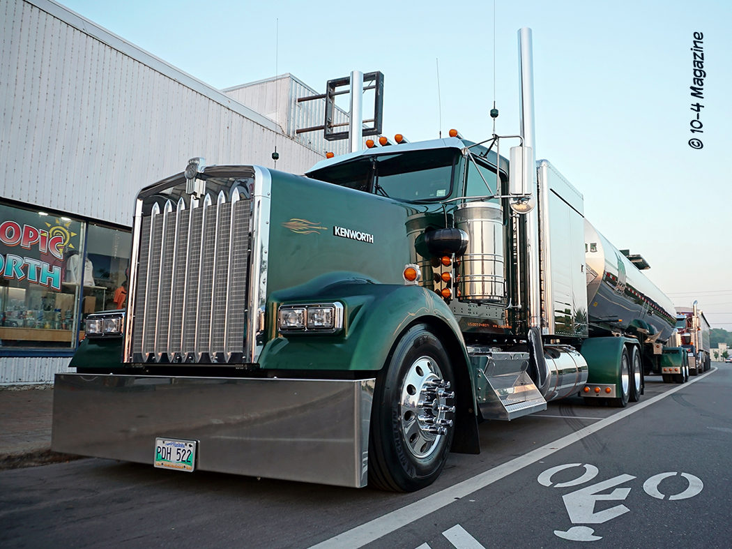 If you’ve seen me at a truck show, you know I’m usually buzzing around taking pictures with little to no time for socializing. But on Friday, September 14, for the first time in I can’t tell you how long, I allowed myself the day to just soak up the show and take my time walking around, talking with people and, of course, my favorite… looking at trucks. Trucks were being moved around throughout the course of the day, as the main drag through town was shut down for truck parking. I got a chance to visit with my friend Dennis Durand of Jade Transport out of Manitoba, who was in attendance with his 2017 KW W900 and a 2016 Model 407 Tremcar tanker.
