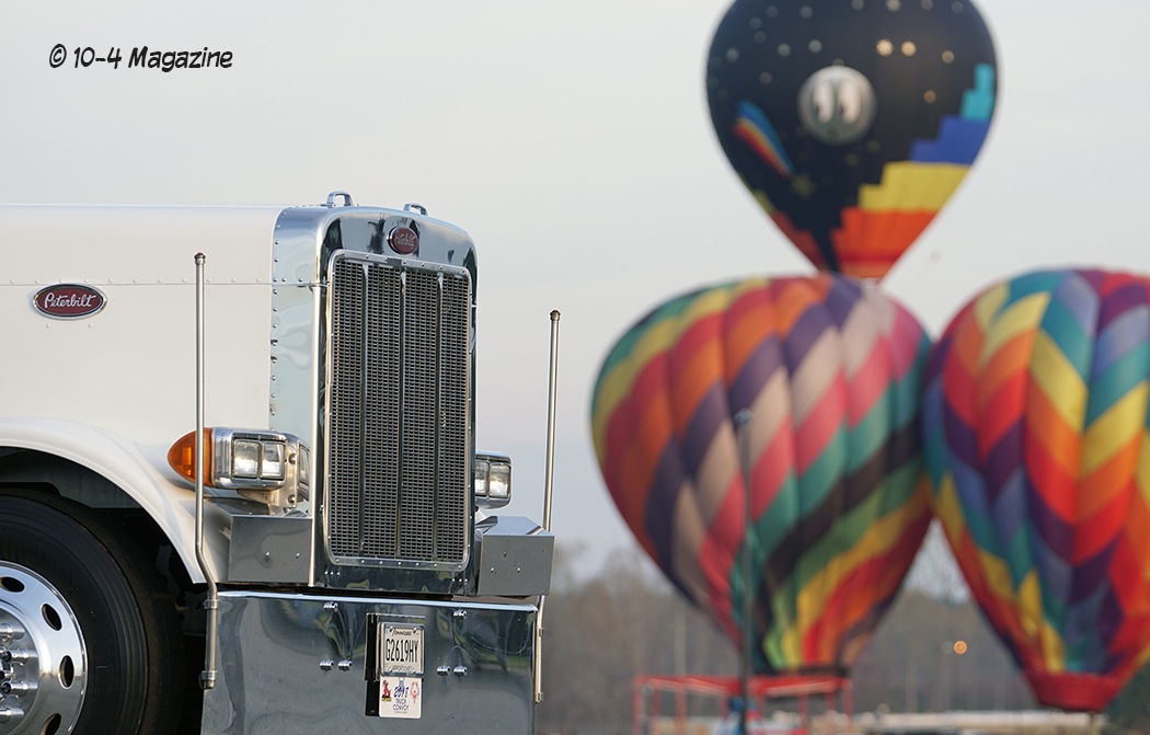 Some may or may not be interested, but I have only seen hot air balloons on the horizon and maybe one or two take off or land from a distance, but I have never been as close as I was to seeing these massive balloons as I was that morning. There was an incredible sunrise that left quicker than I would have liked, but then, as scheduled, the balloons took flight starting at 7:00 A.M. My only disappointment was there were only a handful of trucks on the show lot because more trucks would have made for some epic photos. The weather was a slightly balmy 50-some degrees and overcast to start, but it continually got warmer as the morning progressed. One of the first trucks to roll into the grounds was the green Diesel Life, Inc. Peterbilt 389 that hauls around the Diesel Life apparel trailer.