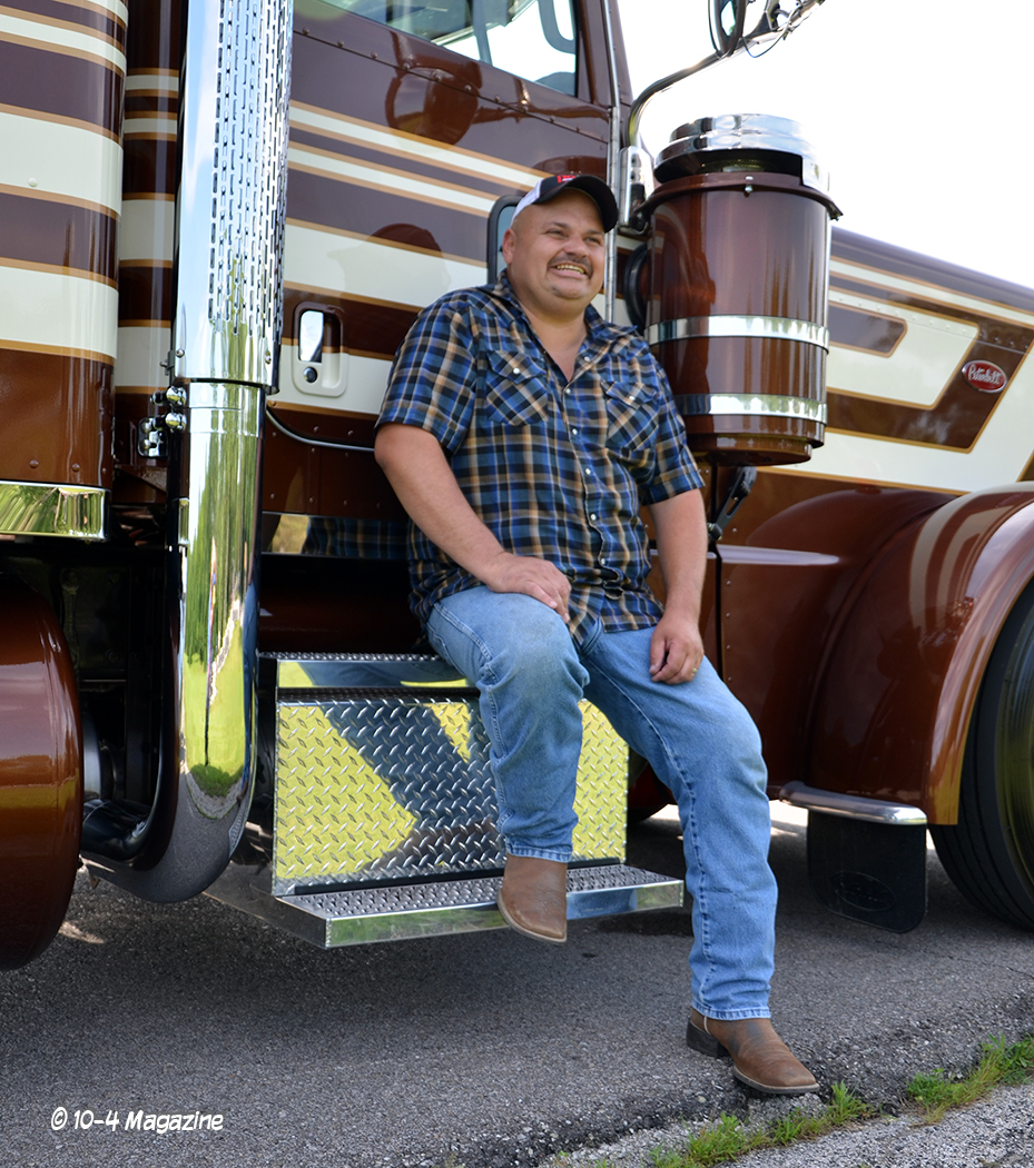 Recently operating a sweet white 1983 Pete 362 COE, his wife Mandie, who is an accountant at a local law firm, told him he should get a new truck. Responding, “I like my cool old trucks,” she eventually convinced him that he could run more and make more if he had a new truck that did not require so much work. A friend of his, Eddie Braun, told him to call me, so he did. Michael and I hit it off, and I got him approved to buy a blue truck we had on the lot. Wanting to think about it, the truck sold to someone else! He was like, “Man, I had my heart set on that new truck, what else you got? My favorite color is blue.” The only “cool” one we had on the lot was Legendary Brown, but he said, “Okay!”
