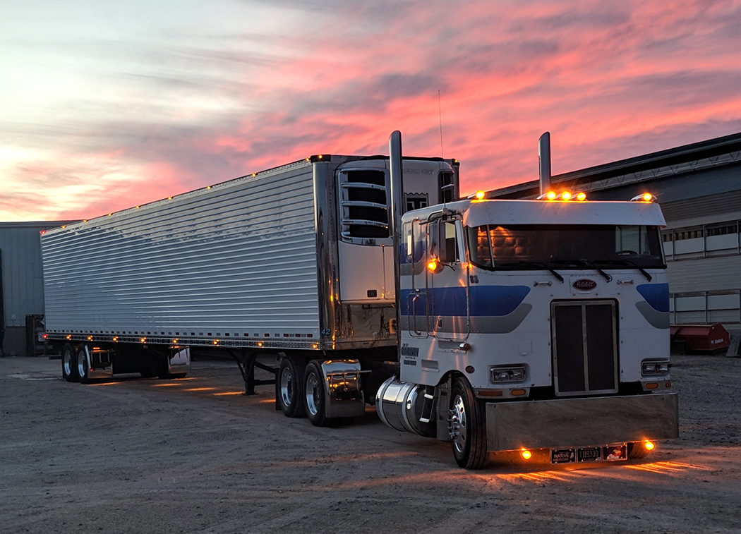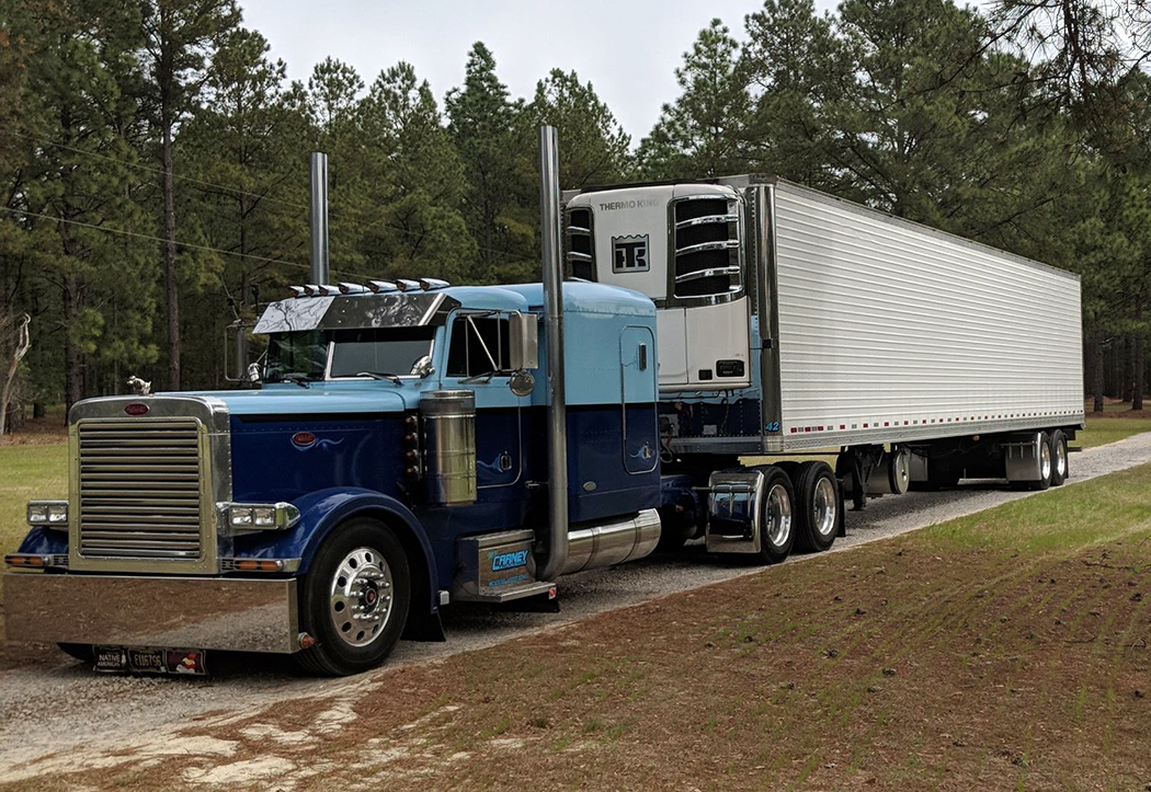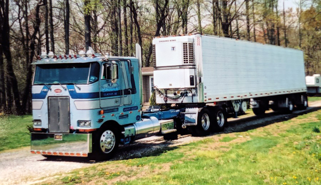 Running the 1984 for a couple years, he then bought another COE – a 1985 Peterbilt 362 single bunk in his favorite color – blue. As soon he turned 21, Michael got a reefer and went long distance trucking, living the dream, running to places like Florida and California, along with other destinations in the Midwest. For a short time, he pulled a cattle trailer, and on one of those trips he ran across someone that had trucked with his dad and grandfather. His grandpa George Carney wasn’t Amish, but he used a horse and buggy to go to town and horses to work the ground. I guess he didn’t really like things that ran on gas much. The only vehicle he ever bought was a 1955 Chevy pickup, and in 2004, when it sold, it only had 1,400 miles on it!