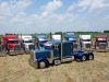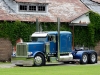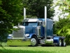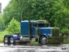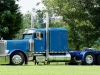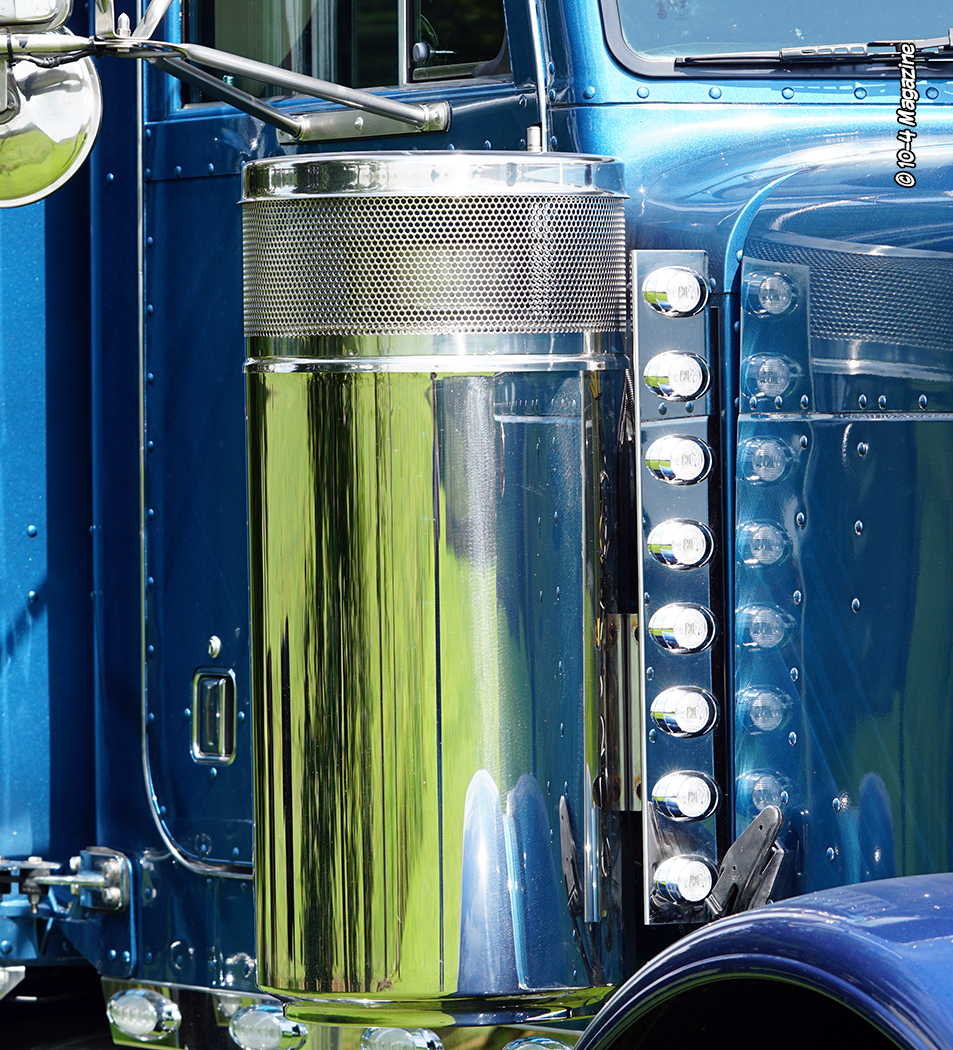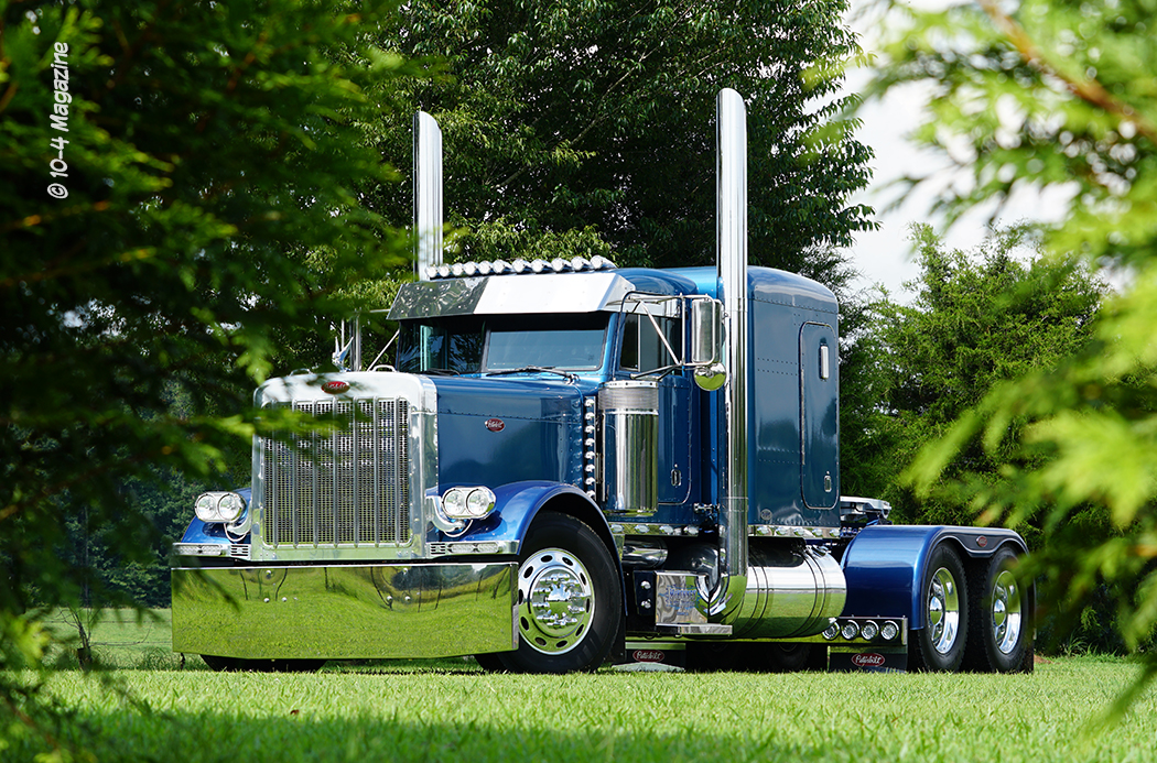 Bertha, a 1994 Peterbilt 379, was purchased in December of 2002. She boasts a 425 CAT 3406B with a 15 over transmission, 3:90 gear ratio and a 260” wheelbase. Although it can be difficult to see, depending on the light, the truck and fenders are actually two different shades of blue. The truck also sports 7” Dynaflex stacks and WTI rear fenders.