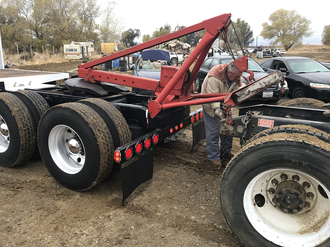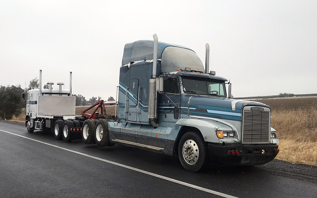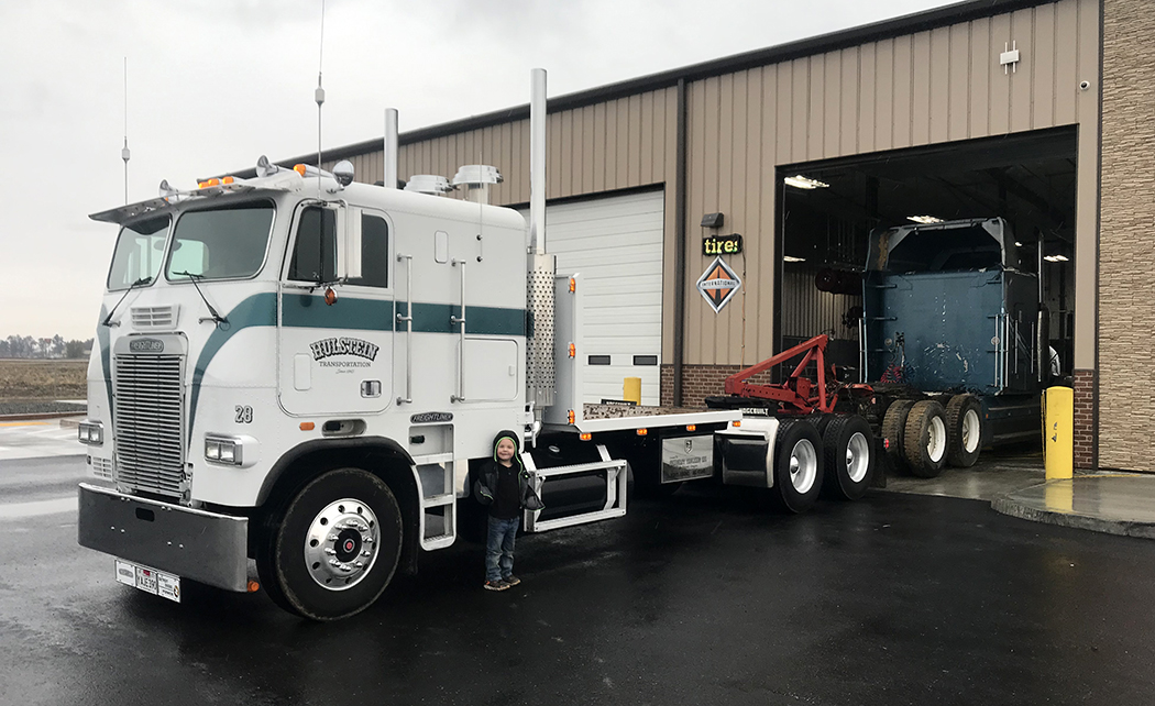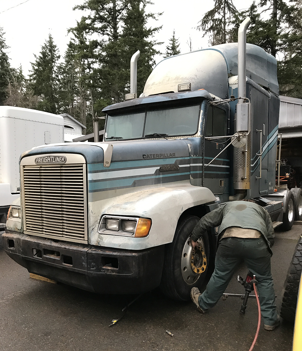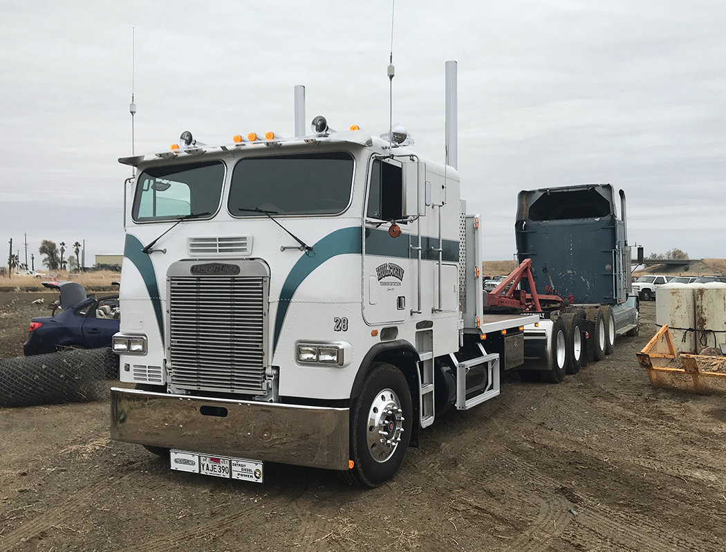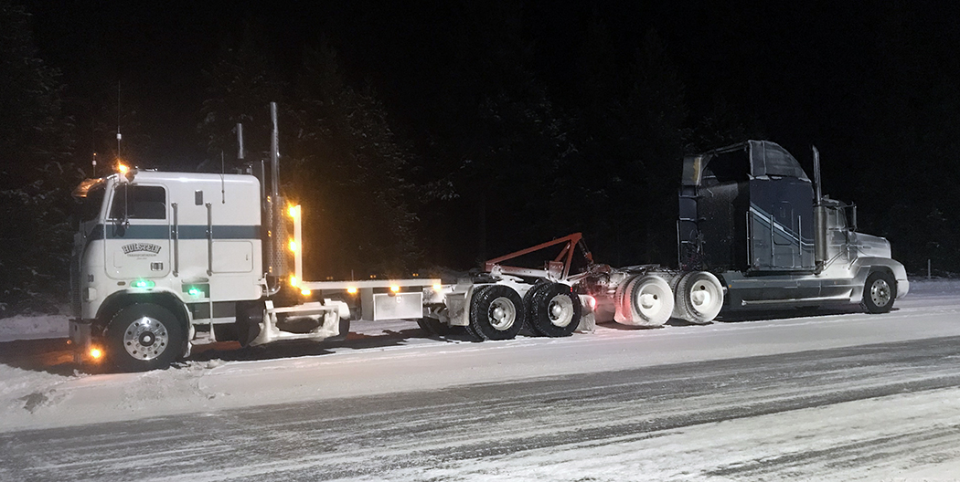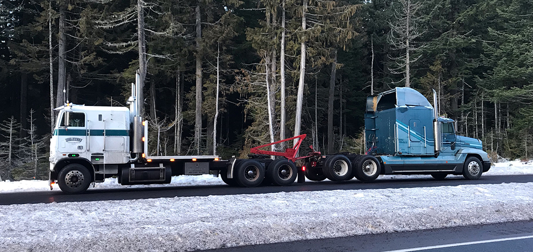 Happy New Year, everyone! Time to make some resolutions to ourselves that we likely won’t recall by next month. Hopefully, you have something exciting to look forward to in the coming year. As for me, I have purchased another old project truck to tinker with – a 1989 Freightliner FLD120 with a 3406B Cat and a 15-speed. While it may not look like anything glamorous or special to most people, I specifically chose this truck for the body style. It’s not a flat top and it’s not a condo – it’s got the somewhat rare 60” stand-up removable sleeper, which was common before the integrated condo sleepers were available. I encourage you to look back at my January 2015 poem that describes a couple of trucks my dad had in ‘89 and ‘90 that are the inspiration I draw on for the vision I have for this particular project. So far, I have bought the truck from a friendly gentleman in California and learned that it had sat through a flood that let water into the engine and rear ends, so that will be a major hurdle to overcome. But I think I can handle it. I made a call to my friend Gus Hulstein to ask if he had any connections with anyone who could tow it the 750 miles up to my place in Washington state, and Gus didn’t even hesitate to offer to do the job personally. So, within a week, he and his dad Jeff, along with Gus’ son Gerrit, were heading through the ice and snow in their classy cabover Freightliner on Thanksgiving night to go hook-up to my new-found treasure and bring it to me. And although they didn’t have an easy trip, due to the nasty roads, they took the opportunity to share in the spirit of my vision for the project and to spend the time together on a father, son and grandson trucking adventure. And they did it with a winning attitude despite the adversities they faced along the way. What a great group of guys! Thank you, Gus, Jeff and Gerrit Hulstein for all the help and the pictures you took along the way. I felt like the trip you made together reflects the same father and son kind of moments that I so fondly recall with my dad, and that’s why I’m inspired to build another rig that resembles one he once owned.