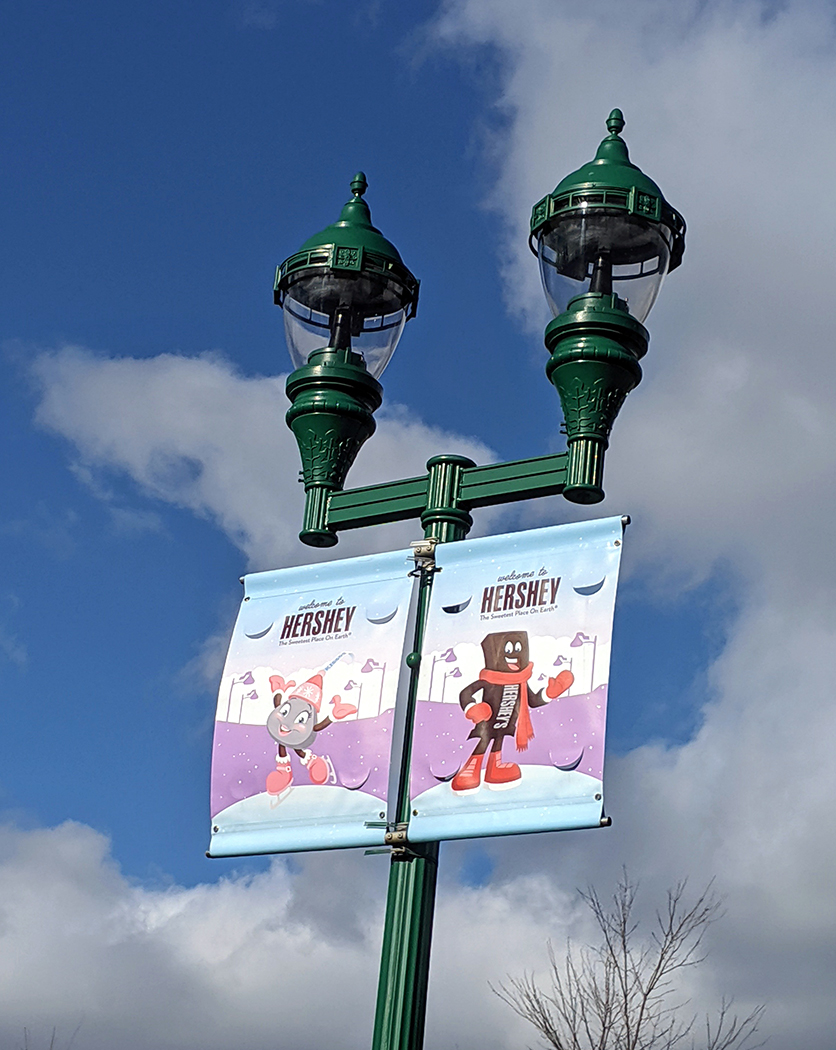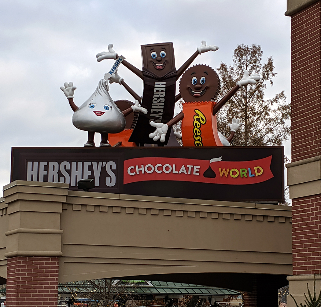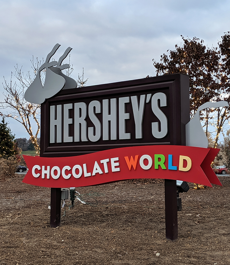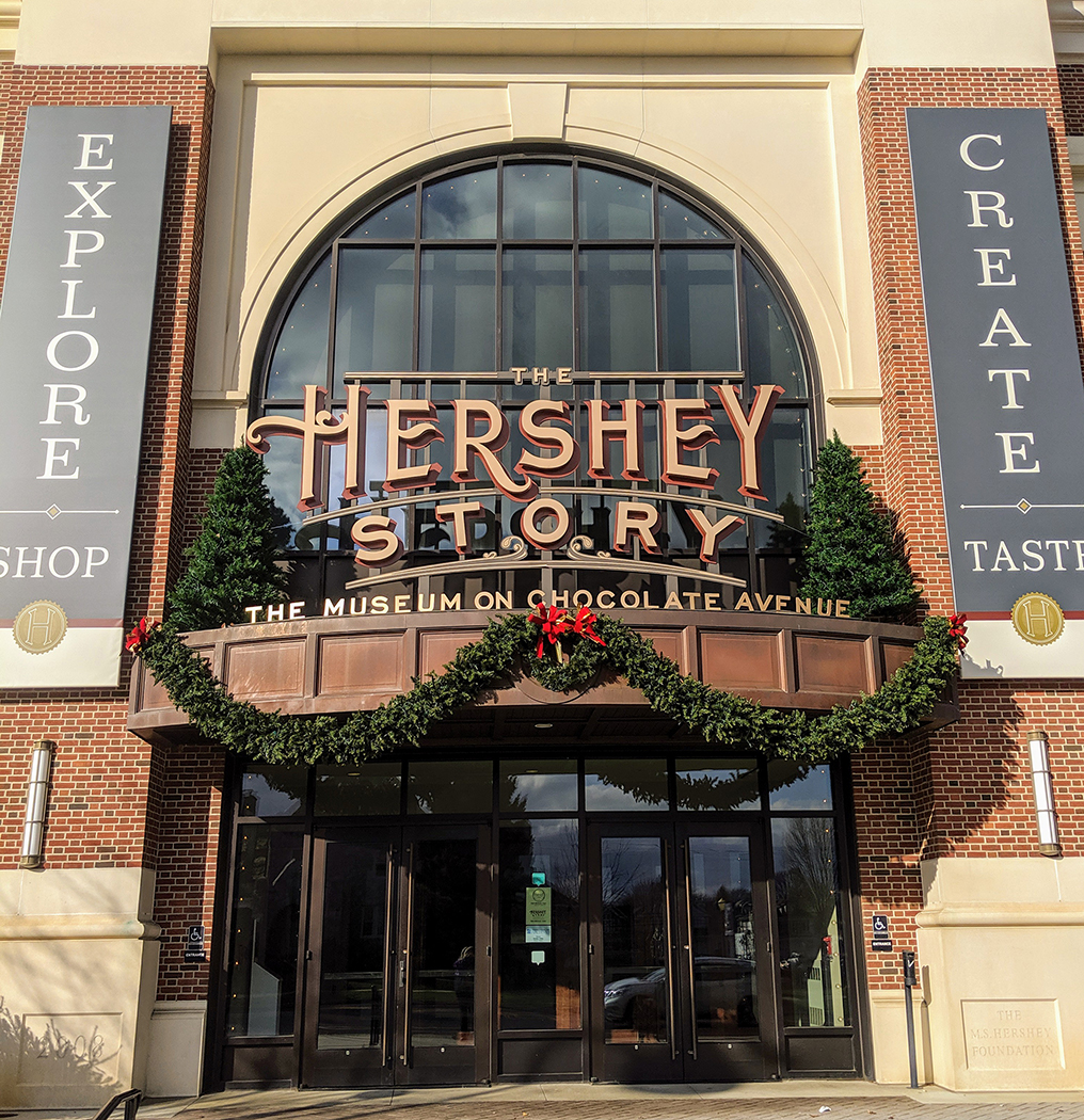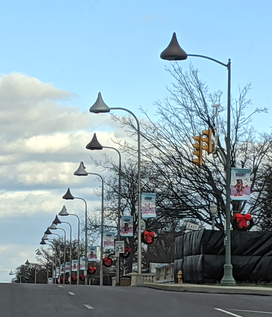 It would be hard not to have a sweet day in Hershey, PA. I’ve been through this town a few times in my years on the road, but what I remember most from those times passing through were the streetlights, which are shaped like Hershey Kisses. So cool! After a recent visit to Chocolate World and its various Hershey-related attractions in late November, I decided to do a little research and learn more about how “the sweetest place on earth” came to be.