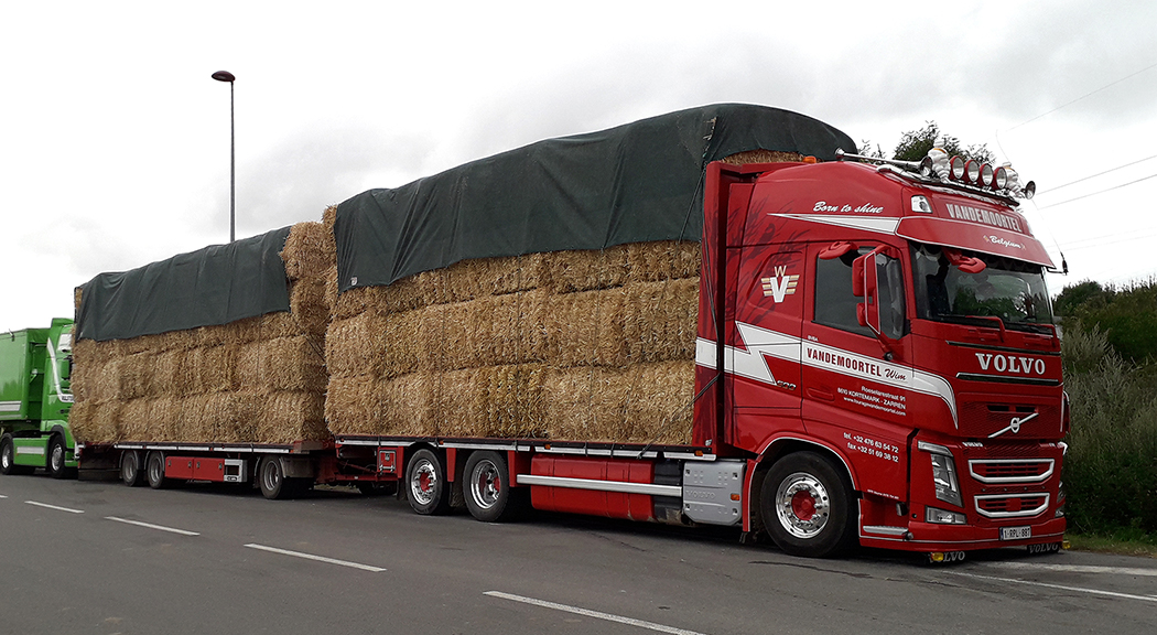 His truck is a Volvo FH3 with a 13-liter 500-hp Volvo engine, and his trailer is 13 meters long (about 42 feet). Willem usually pulls a trailer with a walking floor hauling compost to florists in France. He also occasionally pulls a low boy, a flatbed or a bulk tipper (dump trailer) when he gets the chance. Unlike here, between Canada and the US, where you have to go in with a load and load right back to your country with no “in country” hauls allowed, Willem told me that he can go to France and do two loads “in country” before he is required to do a load back out to Belgium.