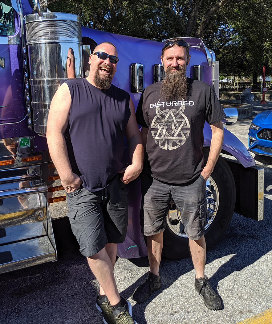 Renting a very American beautiful blue Mustang convertible, Willem and his friend Yves were seeing America for the first time. Having already visited the Kennedy Space Center and Daytona Speedway, the truck stop in Vero Beach was the highlight of the trip so far for Willem. He loved being able to actually see the American trucks up close, and my boyfriend John Jaikes was more than happy to show him “Only Class” – his famous bright purple Kenworth W900L combination, which has won numerous awards and was featured on the January 2018 cover of 10-4 Magazine.