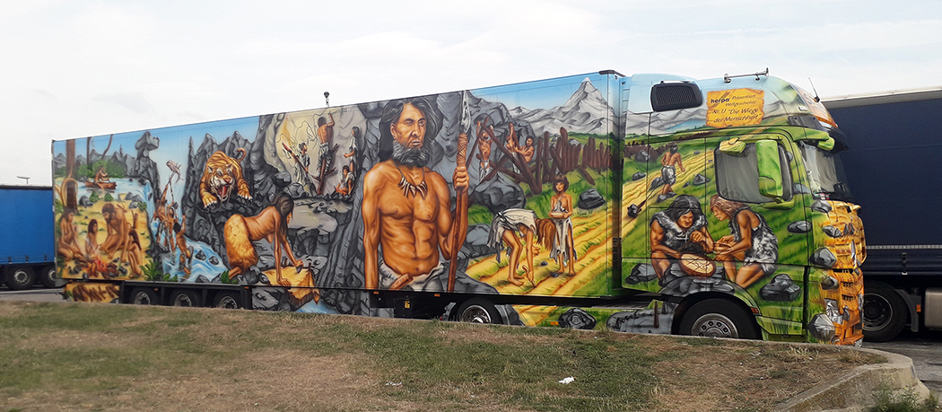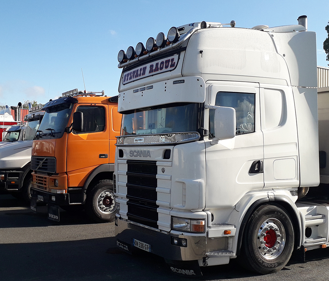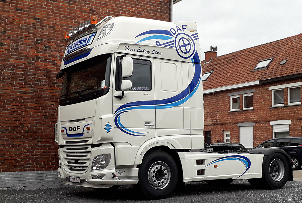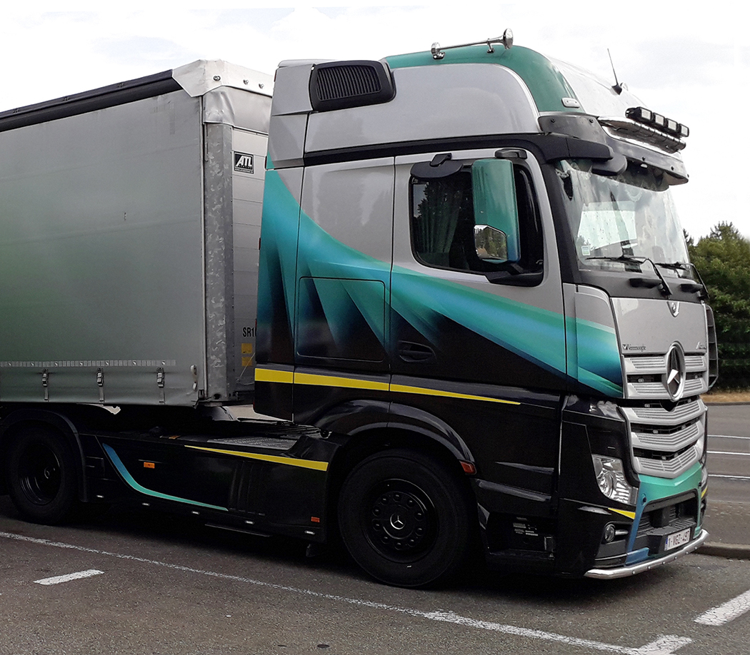 The French have a few trucks with hoods, but they are pretty rare. Where here a cabover has become the rarity, they dominate in Europe, mostly due to length laws and a lack of space. They do sit on the left side of their vehicles, like we do here, and they drive on the “right” side of the road. Most of the trucks in Belgium are Volvos, DAFs, Scanias and Mercedes, and, like the other developed countries in Europe, they like their trucks to be colorful, have extensive graphics and detailed murals, often depicting scenes and characters from their favorite movies, history, sports, popular bands, or other well-known celebrities.
