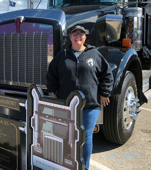 The Women In Trucking Association (WIT) recognizes Su Schmerheim, one of the few female solo horse haulers in the nation, as its March 2020 Member of the Month. As a lifelong horse enthusiast, Schmerheim’s passion for horses began in her teenage years. Since the age of 23, she has been showing Arabian and Half-Arabian horses in Michigan and at regional/national events around the United States. Finding a career that involved her love of horses always had seemed like just a dream, but when she left her corporate job in 2011, a friend suggested that Schmerheim consider finding work in the horse transport industry. Later that year, she began working for a local horse transport company, where she had the opportunity to obtain her CDL. Five years later, a new opportunity presented itself. After connecting with Schmerheim through social media, Kyle Ecclestone, president of Ecclestone Horse Transport (EHT), offered her a new job. EHT is an international equine logistics company, providing worldwide horse transportation by both road and air. This opportunity allowed Schmerheim to grow her career. Today, she is involved in both driving and logistics planning for EHT. She was assigned her own truck, a custom Kenworth T800 with a Doyle 15-horse trailer. Her feline co-pilot Jake often travels with her. “The most exciting part of the horse transport industry is the unknown,” said Schmerheim. “Loading and hauling a live load certainly presents its fair share of challenges at times. No two days are ever the same.” In the past year, Schmerheim has presented her truck at several truck shows, including the Trucker’s Jamboree in Walcott, Iowa, the Shiawassee County Truck Show, and the Richard Crane Memorial Truck Show in St. Ignace, Michigan. She was also the recipient of the Women In Trucking Award, presented by association president and CEO Ellen Voie at the Richard Crane event. Schmerheim encourages anyone interested in a trucking career to check out a truck show near them. She points out that it is a great way to connect and network with other people from the industry. For those attending the Mid-America Trucking Show in Louisville, Kentucky at the end of March, stop by booth #40672 in the North Wing Lobby to see WIT. Established in 2007, the WIT association strives to encourage the employment of women, promote their accomplishments, and minimize the obstacles they face working in the trucking industry. Whether you’re a professional driver, in mid-management or a corporate executive with a shipping company, motor carrier, 3PL or driving school, you’ll find value in joining the ranks of WIT’s diverse membership of over 5,300 women and men. If you would like to become a member, visit www.womenintrucking.org today to learn more. We at 10-4 Magazine would like to congratulate Su Schmerheim for being WIT’s “Member of the Month” for March 2020.