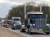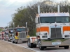 Leading the long procession was Eldon Jaeger’s 1999 extended hood Peterbilt 379 with a custom four-door crew cab. Mounted on the back of the truck, in place of the 5th wheel, was a stainless-steel box that measured 5’ high, 9’ long and over 3’ wide. This box was covered with a patriotic vinyl graphic stating the mission of this Honor Cruise on the sides and “God Bless America” on the back. A few weeks after the cruise, Eldon took this truck with the sign attached to the Amcan Truck Fest in Union Grove, WI on June 12-13 to show his continued support for ALL essential workers.