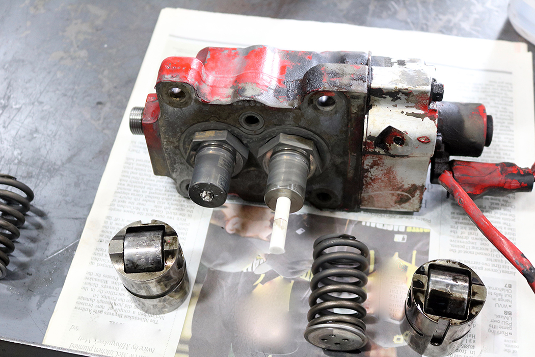 Basically, the test consists of the following: First, relieve pressure from the system by loosening the nut on the pump-to-rail line. Second, tighten it back up. Third, block off five injectors at the fuel rail, leaving the most accessible injector unblocked (you’re going to need a high-pressure fuel pump service tool to plug into that 6th injector line). Clear any debris or residual fuel from the area before installing the tool. Fourth, crank the engine for 15 seconds at a time, being careful not to crank longer than that, as you could burn out the starter motor. Fifth, disconnect the fuel pump actuator and injector pass through from the electrical harness. Sixth, connect a drain line from the fuel pump service tool to a graduated beaker (yes, like the ones you used in your high school chemistry class). Crank the engine to purge any air from the system. Finally, crank in two 15-second intervals and measure how much fuel you have in your beaker.