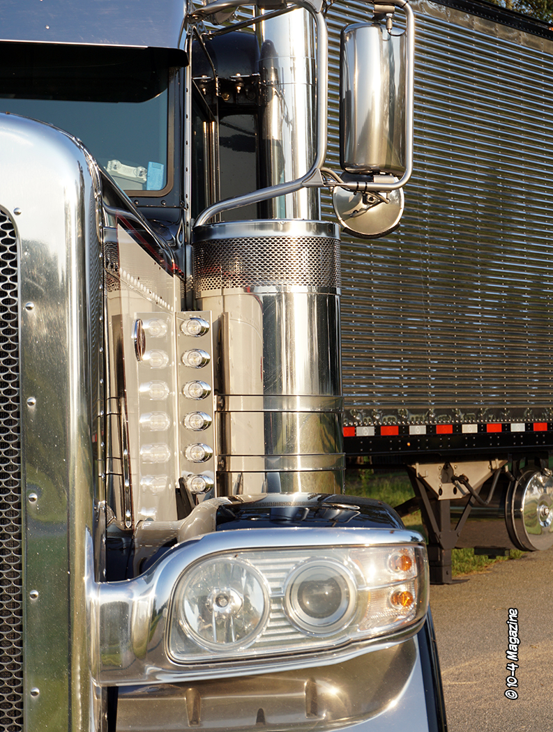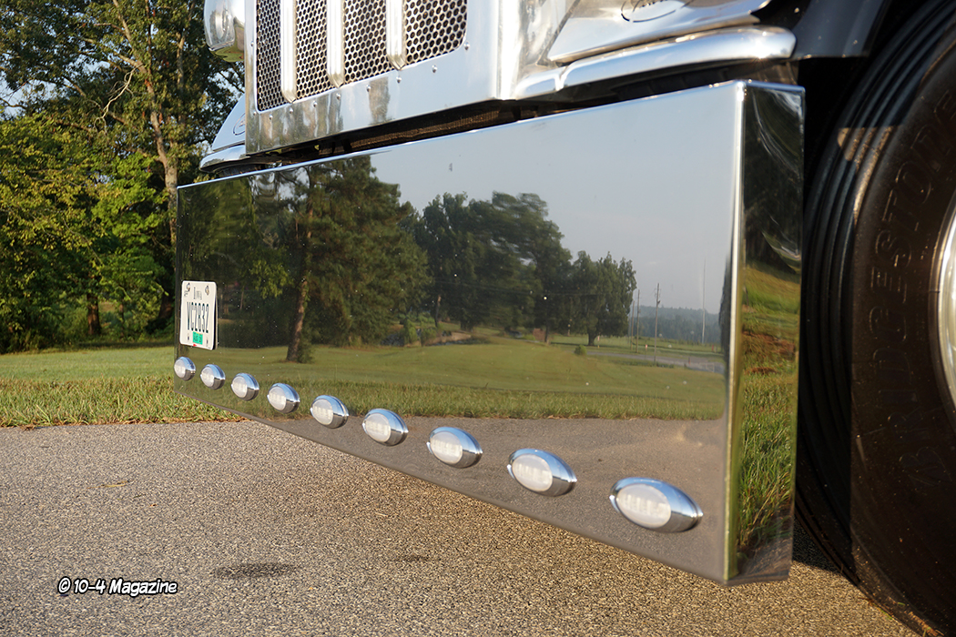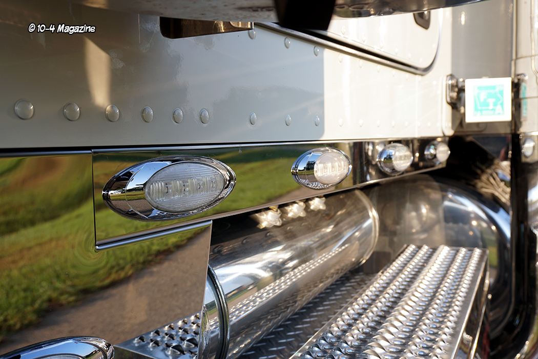 What makes this truck unique is the attention to detail on the retro “old school cool” paint scheme, which is a variation of the old Tuxedo paint scheme. Dean outfitted the truck with all stainless-steel custom parts, versus fiberglass or plastic, like the big heavy drop fenders on the trailer. All-in-all, the truck is both a head-turner and tastefully done.