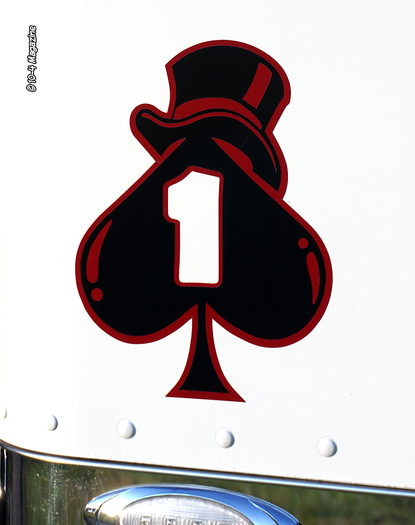 Friday Trucking currently owns a total of 4 trucks, with 3 trucks leased on, and they dispatch anywhere from seven to twelve trucks every week when outside trucks are available for work. All seven trucks have the same ace of spades with their respective truck numbers, and if you pay attention, you’ll see the spade wears a top hat. This hat is actually a coachman’s hat, which is a modified top hat, that was once a familiar sight on the gambling boats of the Mississippi River, the same river Dean and Arian enjoy plenty of time on today. If you spy Dean at a show, you will most likely see him wearing his coachman’s hat.