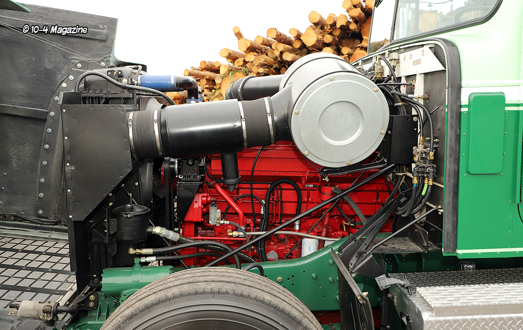 The last truck Larry drove was a 1981 International Transtar 4300 with a 400 Cummins, which he really liked. Unfortunately, that truck (#25) was eventually sold, so later, when Larry decided he wanted to build one to replicate it, he had to find another one. The one they found, about eight years ago, was from a farmer in Idaho and it only had 140,000 miles on it! This 4300 is a bit rare, as it was factory-equipped with a 525-hp Cummins KTA motor, and to accommodate that big engine, this Transtar has an extended hood and is also an Eagle edition.