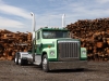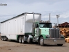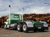 With 35 working trucks pulling chip trailers, walking floor trailers, and dry vans, 95% of the freight Lemmons Trucking hauls is their own product. Back in the 1970s, John bought a new International that was painted two-tone green (Mint green and Forest green). He liked those colors so much, every truck since then has been ordered in these colors. Not all the trucks today have the exact same stripe scheme, but they are all painted in those same colors – and they are now all Peterbilt 379s or 389s. A typical Lemmons truck is also a daycab, has a drop axle, is powered by a C-15 Cat engine, and is nice and clean almost all the time.