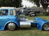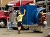 Some other sweet rides included the latest build from Gary Jones – his “Low Budget Lounge” – a red Peterbilt with a large aftermarket sleeper, and Jimmy Sernach and his blacked-out 1994 Pete 379. This truck was featured on our March 2012 cover, and we hadn’t seen it in a long time, so it was great seeing it and catching up with Jimmy. Jake Bast brought out his retro-styled white 379, there was a unique and cool custom blue International Loadstar cabover hot rod with a Chevy V8 engine mounted behind the cab, and Justin Lang set up his flat black Peterbilt to look like it was doing a burnout standing still!