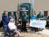 The current CEO, Kim Thomas Kuhnle, along with the former CEO Kim Taylor Kuhnle, Bob Russell (CFO), Tom Kuhnle, and Casey McNicholas from the Safety Department, were all on hand to present Roger with a special trophy with a bronze eagle and a huge check for $50,000! Roger was caught off guard and totally shocked. His reaction to the big check was priceless. After the trophy and check were given to Roger, special door stickers were placed on each side of his truck acknowledging his accomplishment of 50 years of safe driving.