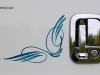The Special Teal Effect and Oyster White colors on the truck were factory ordered and inspired by a floral arrangement she had in her living room.  There was one disappointment – when Debbie picked up the truck, the frame was not the correct color.  Upset was an understatement, however, with the steady hands of Keith Eccles of Raw Tin Garage out of Salt Lake City, UT, pinstriping was added that brought all of the colors together and made the truck look like it was planned like this all along.