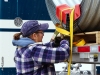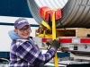 One day she was picking up an oversize load at Richie Bros. in Morris, IL.  If she didn’t load quickly, she would be stuck there for the weekend.  She had to load a backhoe and a dump truck, and a guy there offered to help, because she needed to put a plank under the backhoe as it was being loaded.  The guy lifted the machine up with the bucket but prematurely set it back down – on her hand.  She calmly said to lift the machine back up, but he panicked and set the machine down all the way instead of lifting it back up.  She thought she was going to lose her fingers, but 63 stitches later, she was back on her way.