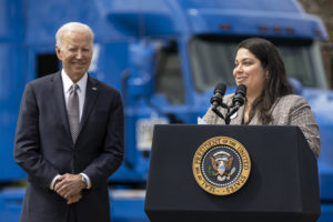 The Women In Trucking Association (WIT) has announced Maria Rodriguez as its August 2022 Member of the Month. Maria is a professional driver for NFI Industries. As a longtime restaurant worker who was laid off due to the pandemic, Maria was seeking stable employment when her boyfriend, who was also pursuing a career in transportation, convinced her to give trucking school a try. Being a mother of a 4-year-old son, she needed a job to provide for her family while being close to home. She attended the New England Tractor Trailer Training School (NETTTS) and knew it was the right career path. During her time at NETTTS, NFI’s core family values and local routes stood out to her, and she was offered a driver trainee opportunity. With a consistent schedule, she appreciates being able to be home before her son finishes school. “I think I’m unique because I’m a mother and I am still able to go to work as a truck driver. It’s very rewarding to have a stable income and be able to come home to my son,” she said. Additionally, Maria is a trainee in the Biden administration’s Trucking Action Plan’s extended 90-Day Trucking Apprenticeship Challenge, which is focused on attracting and retaining talent within the transportation industry. Earlier this year, she was chosen to participate in a special White House event for the program, allowing her to make a speech about her journey to truck driving and then introduce the President of the United States, Joe Biden. The attendees of this event included freight executives, including WIT President and CEO Ellen Voie, truck drivers, and senior officials. As a first-generation immigrant from Venezuela, Maria is proud to be an advocate and uses her voice to encourage other minorities, including other females and Latinas, to pursue a career in the transportation industry. “Women are capable of getting into trucking, they just need to take the first step and enroll,” Maria says. “There are plenty of opportunities where you can go over the road or, if you’re a mother like myself, there are local routes where you are home daily.” Women In Trucking is a nonprofit association established to encourage the employment of women in the trucking industry, promote their accomplishments, and minimize obstacles faced by women in the trucking industry. Membership is not limited to women, as 17% of its members are men who support the mission. Follow WIT on Twitter, Facebook, LinkedIn, Instagram, TikTok, and YouTube. For more information, visit www.womenintrucking.org or call 888-464-9482.