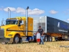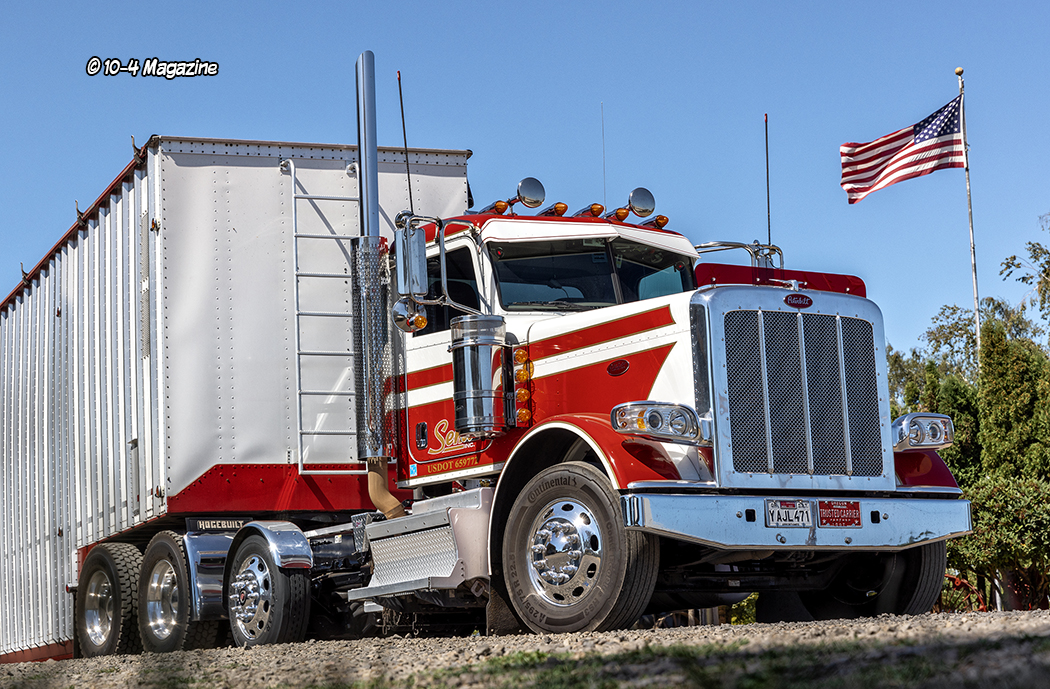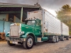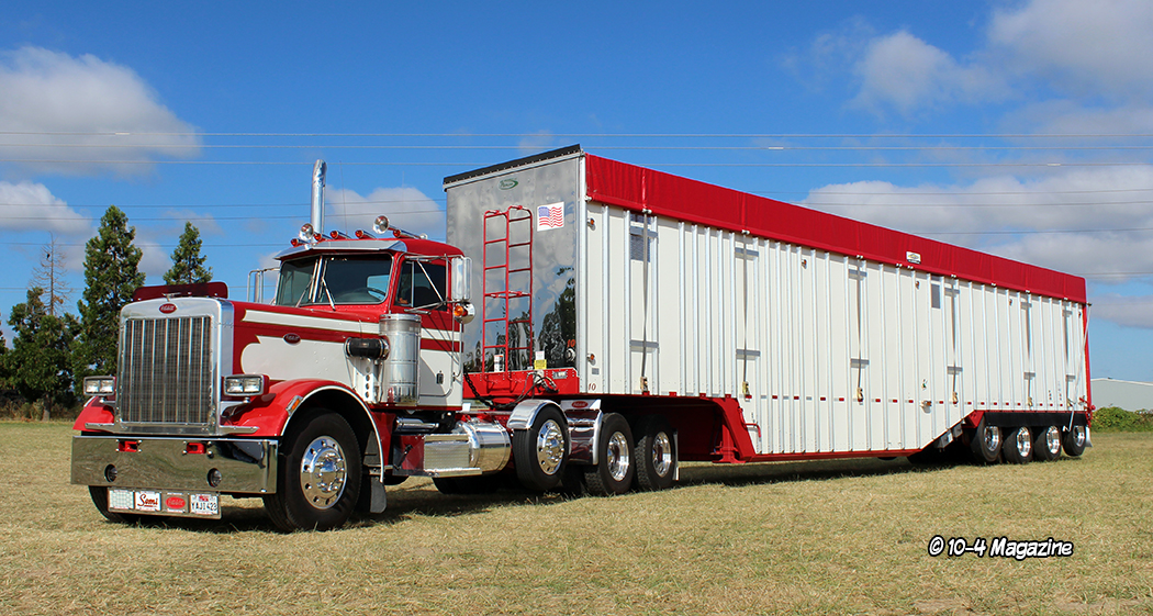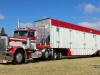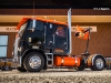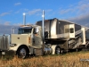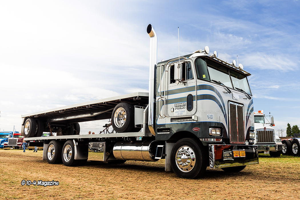 After visiting with the Sanaski family, we headed out, and before my eyes was Greg Zehner’s total homerun silver Peterbilt 362 cabover with grey stripes, with the pull trailer all decked up like the pro that Greg is. Right next to Greg was Jesse Bounds, who was blowing the hay industry away with his new Piercing Orange Roadrunner squeeze.
