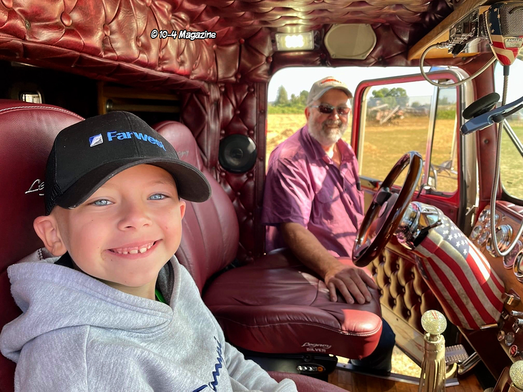 We continued to cruise around, like always, in awe, checking out Kris Pickle and his cool group of at least four of his JK Pickle Trucking rigs, my buddy Willy Shapeley and his classically cool red 359 Pete with a full load of wood, and Bryan Semingson of Semi Inc. and his clean lineup of red and white trucks. We also ran into our friends Clyde and Melody Green, who always treat me and my son like their own, and this time was no different. Lincoln jumped up into Clyde’s cab and, with a big smile on his face, Clyde let me take a little rip around the lot in their truck with just the two of us. A priceless memory.