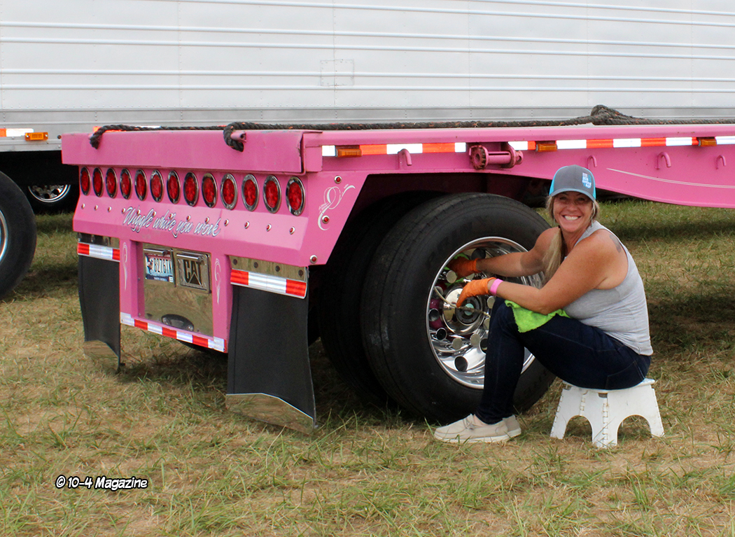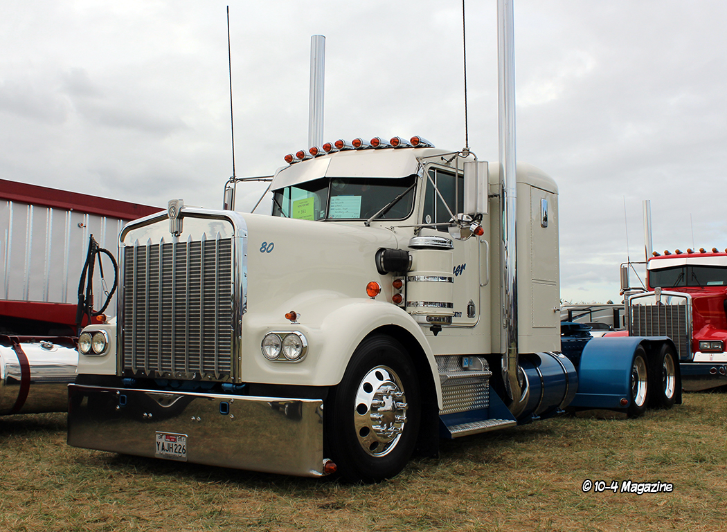 Our first stop was Gus Hulstein’s camp, where I was able to catch up with many greats including our resident 10-4 poet Trevor Hardwick, along with his wife Alicia, and good friends Jeremy Mick, Matt Neyens, and Mike Todd.  Trevor’s “tin hood” Freightliner FLC was in fine form, and Mike Todd’s white and blue 359 gentleman’s street rod absolutely blew me away!  And then, to find out Mike and his dad did the build themselves, that just made his truck even cooler.  It was hard to stop drooling on those trucks, including Matt Neyens’ black 359, but onward we went.
