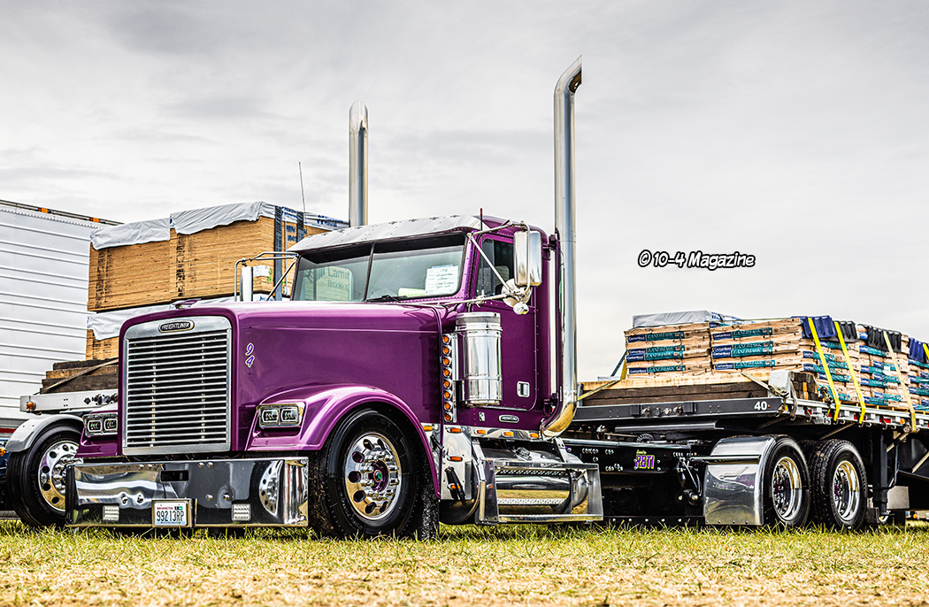 After visiting with the Sanaski family, we headed out, and before my eyes was Greg Zehner’s total homerun silver Peterbilt 362 cabover with grey stripes, with the pull trailer all decked up like the pro that Greg is.  Right next to Greg was Jesse Bounds, who was blowing the hay industry away with his new Piercing Orange Roadrunner squeeze.