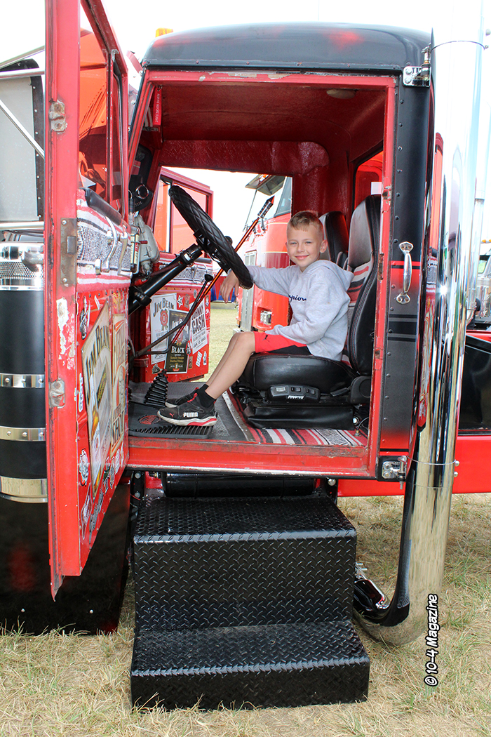 We continued to cruise around, like always, in awe, checking out Kris Pickle and his cool group of at least four of his JK Pickle Trucking rigs, my buddy Willy Shapeley and his classically cool red 359 Pete with a full load of wood, and Bryan Semingson of Semi Inc. and his clean lineup of red and white trucks.  We also ran into our friends Clyde and Melody Green, who always treat me and my son like their own, and this time was no different.  Lincoln jumped up into Clyde’s cab and, with a big smile on his face, Clyde let me take a little rip around the lot in their truck with just the two of us.  A priceless memory.
