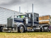 Right around the corner we ran into the Rusty Bradeen crew – Rusty, Brian Grissom, and Chuck – camped between their pressed-out lineup, which including Brian’s cool grey W900, which was fitted with some of the best lighting at the show.  Further down party row we were able to catch up with the sons of a past cover feature trucker, Josh Sanaski (January 2019), as they proudly brought their dad’s rock solid black and red rat rod Pete needle nose out to show off.  Definitely one of Lincoln’s favorite rigs, and one of my favorite families.