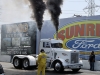 The Super Drag Truck class seemed like an international affair, with Mario Monette of Canada taking the winning position followed by Carlos Sanchez with his maroon truck dragster “El Bandito” from Tijuana, Mexico.  If you attended TFK last year, you witnessed Mario unfortunately blow a fuel line at the start which caused a fire, but he vowed to rebuild and return stronger than ever, and he didn’t disappoint.  Longtime TFK supporter and racer Mark Tarascou (and past 10-4 cover trucker) won the Best Burnout award with his hopped-up faded blue Peterbilt 359 dump truck.